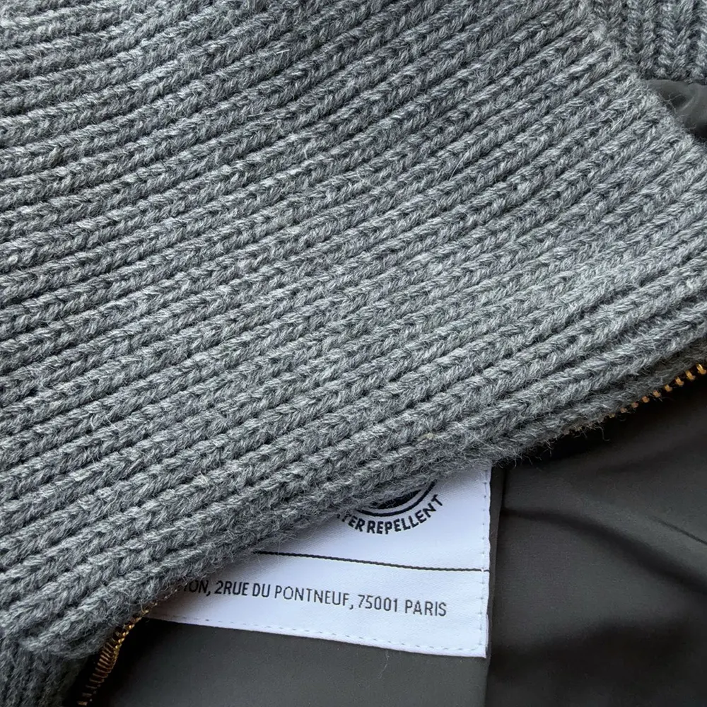 - This water-repellent knitted down blouson is an effortlessly elegant and warm layer, perfect for chic winter resort vacations.