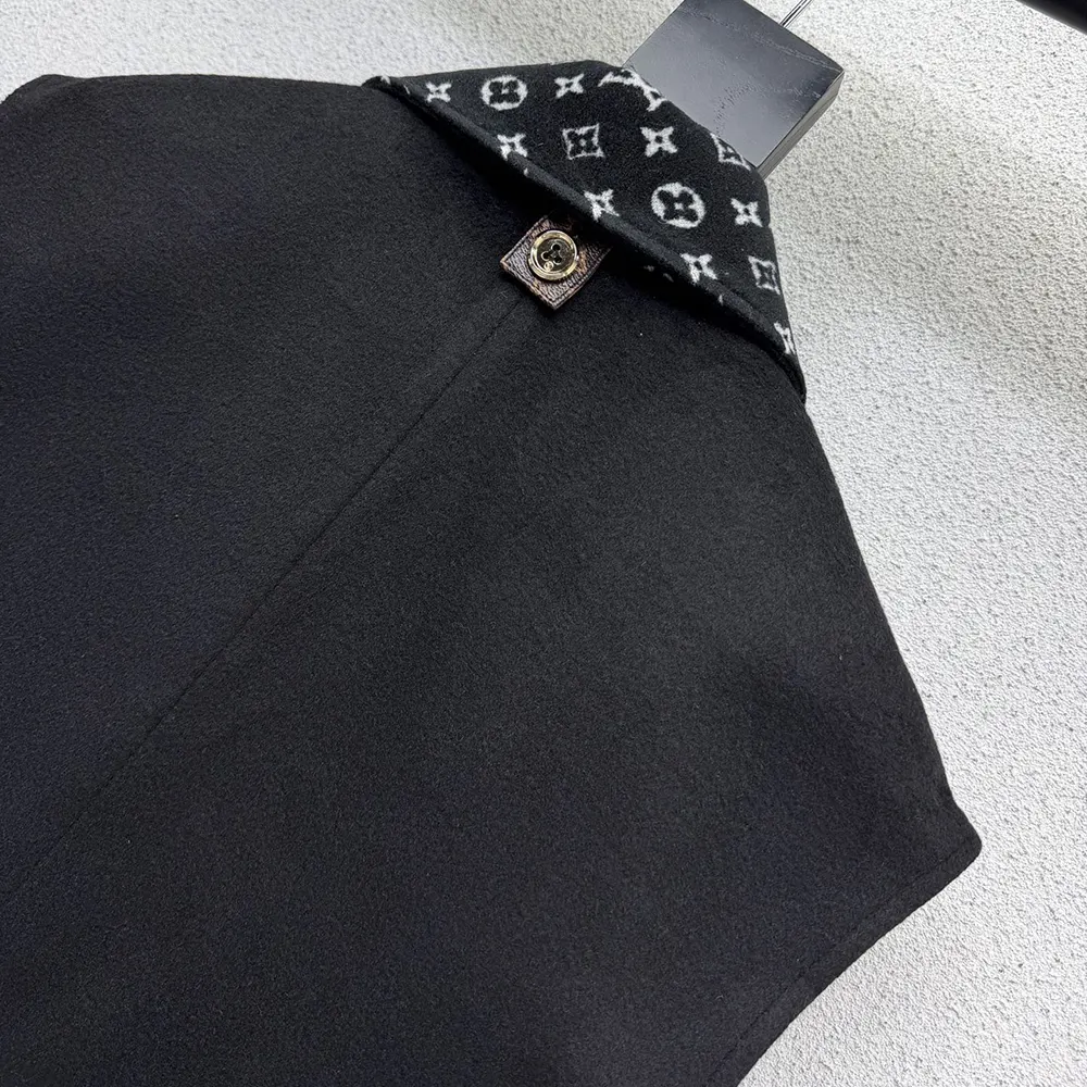 - It is cut from a cozy double-face wool-silk blend with a graphic Monogram signature on the inside, which is complemented by a removable scarf.