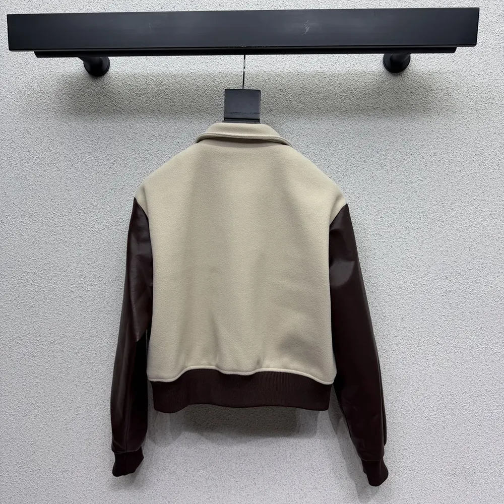 - Revisiting a timeless varsity look, this jacket is elevated in a plush double-face wool-silk blend with contrasting sleeves in lambskin leather for a refined finish.