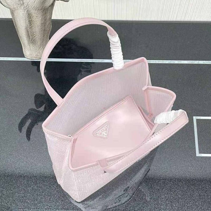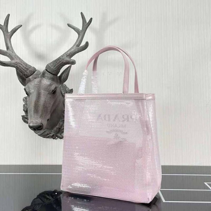 Prada Women Small Sequined Mesh Tote Bag-Pink