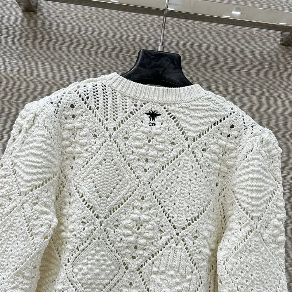 Dior Women Sweater White Openwork Cotton Knit 614S04A7085