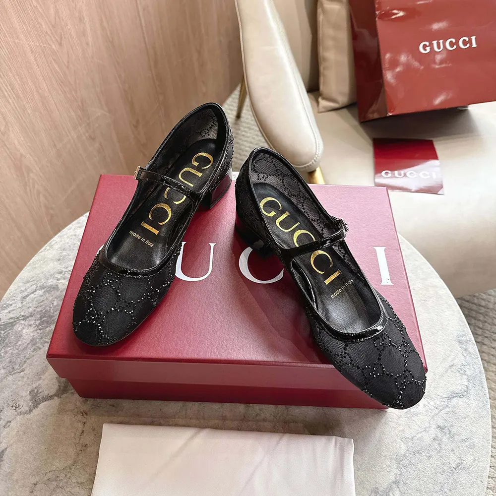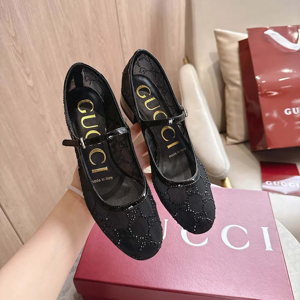 Gucci Women GG Crystal Ballet Flat-Black 835809FAEQ0