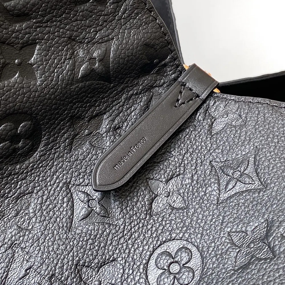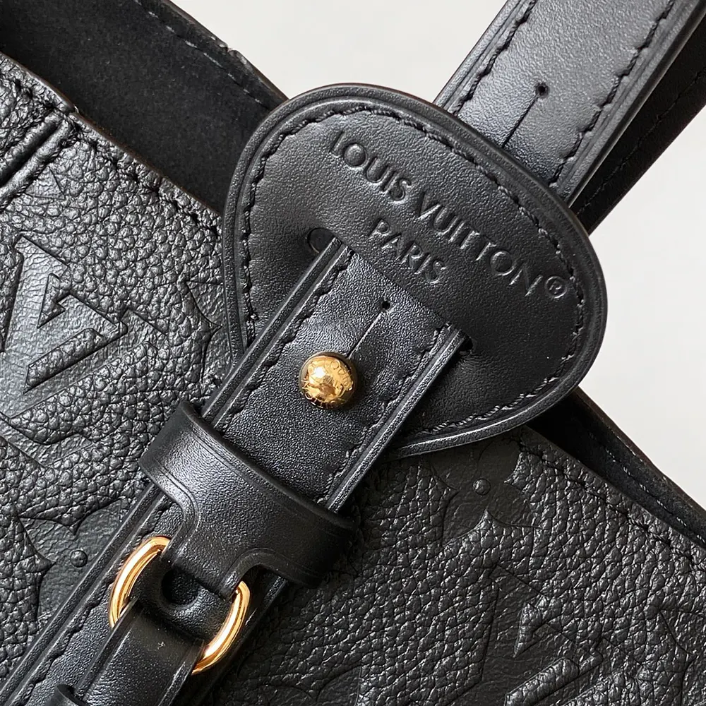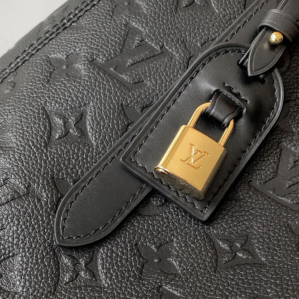- it is offered in Monogram Empreinte leather with gold-toned hardware, including a signature LV padlock and name tag.