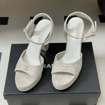 Chanel Women Sandals Suede Kidskin-Gray G47029B23297