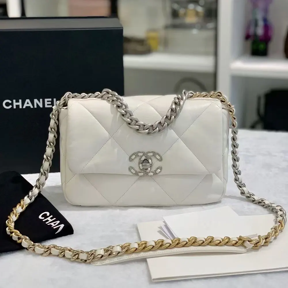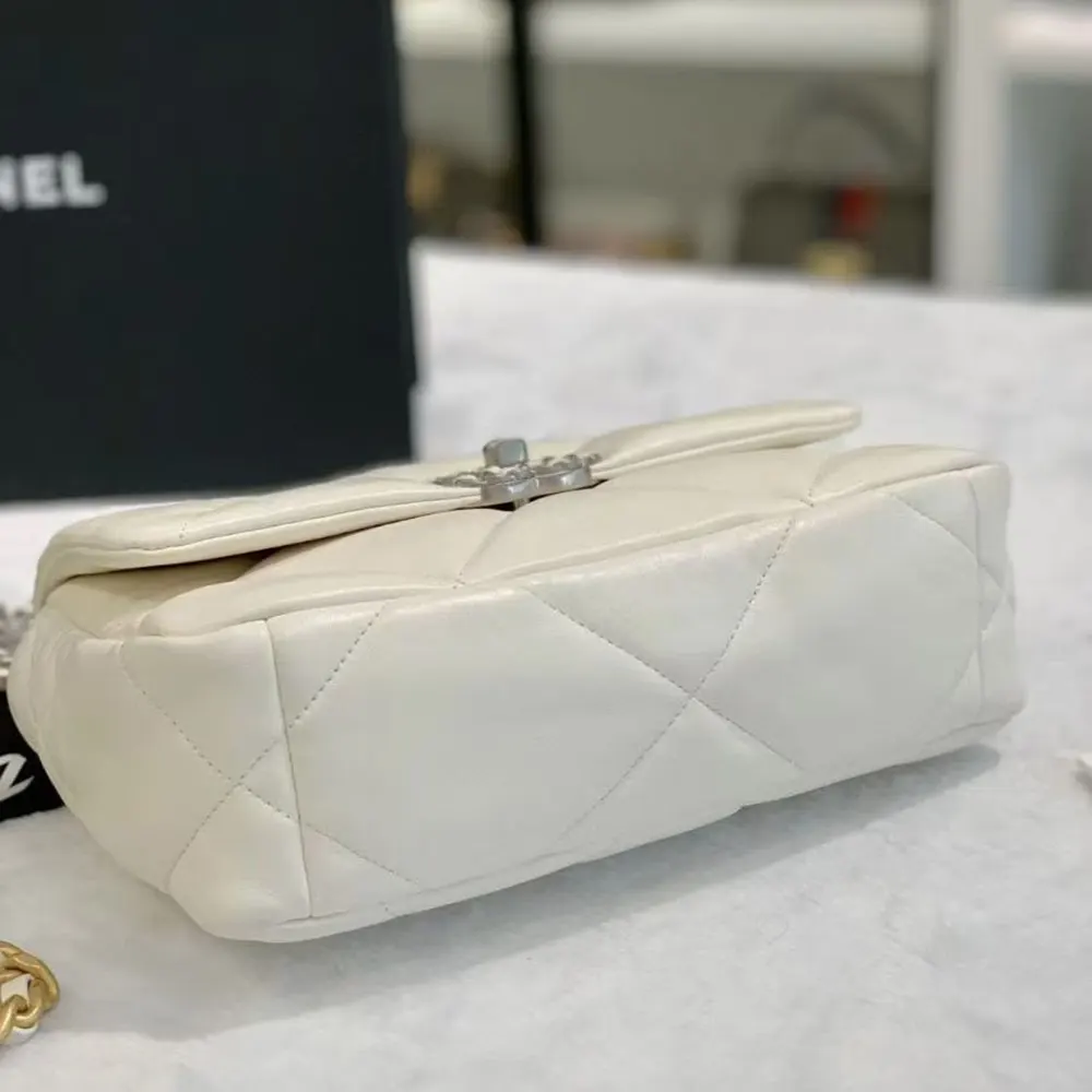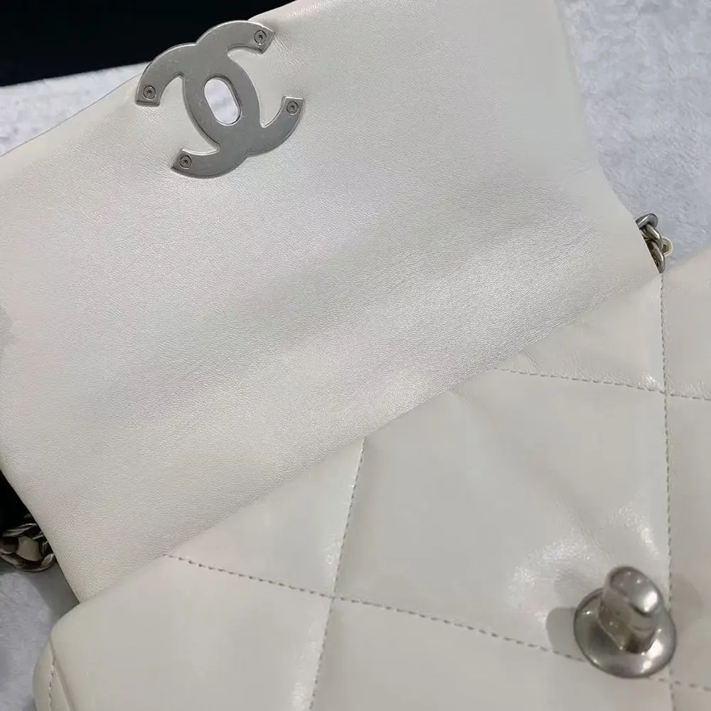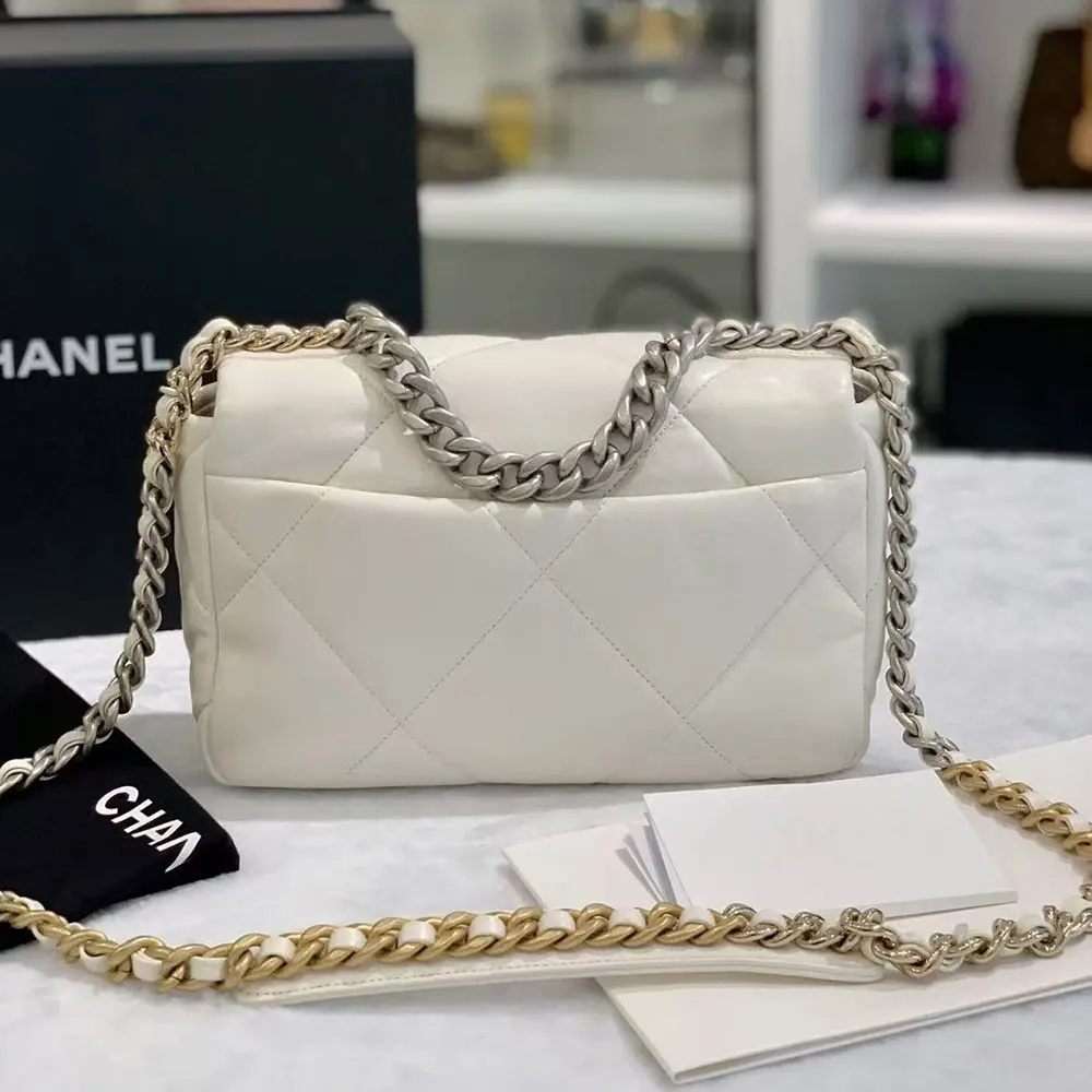 Chanel Women 19 Handbag Shiny Lambskin Gold-Tone Silver-Tone & Ruthenium-Finish Metal-White