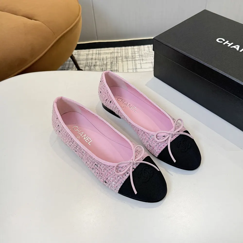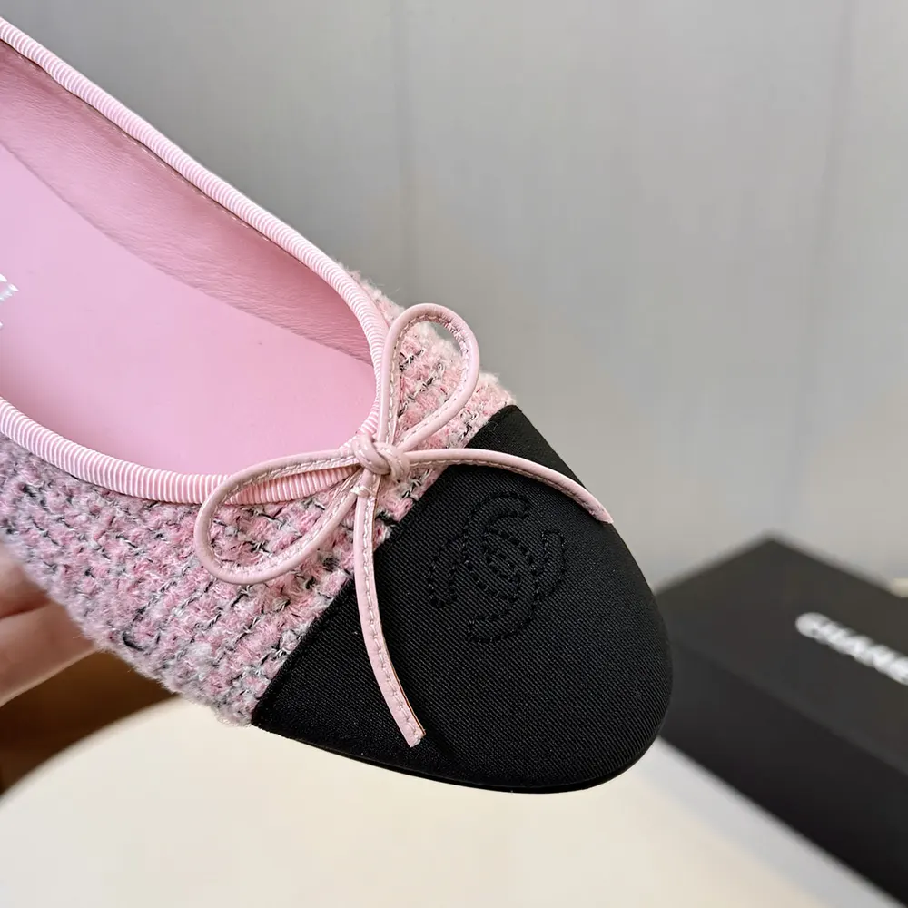 Chanel Women Ballet Flats Tweed & Grosgrain-Pink G02819