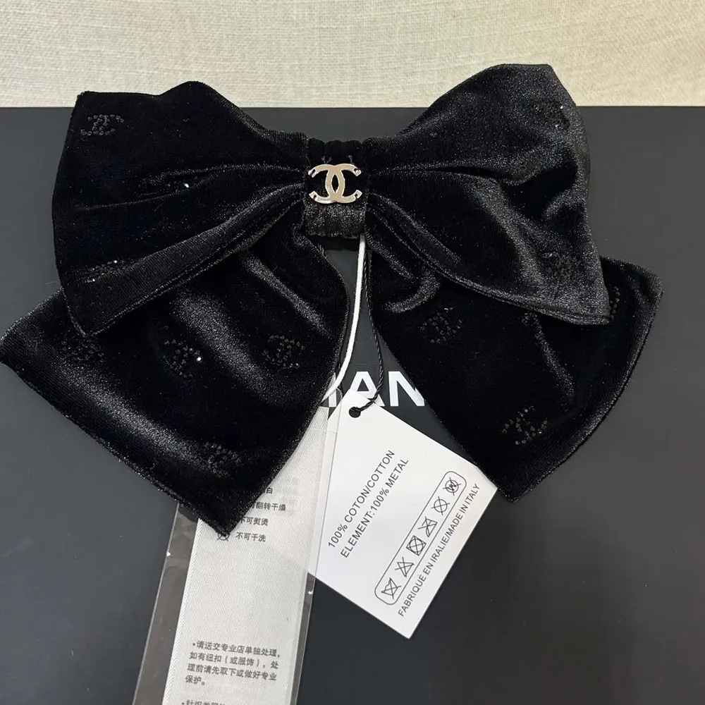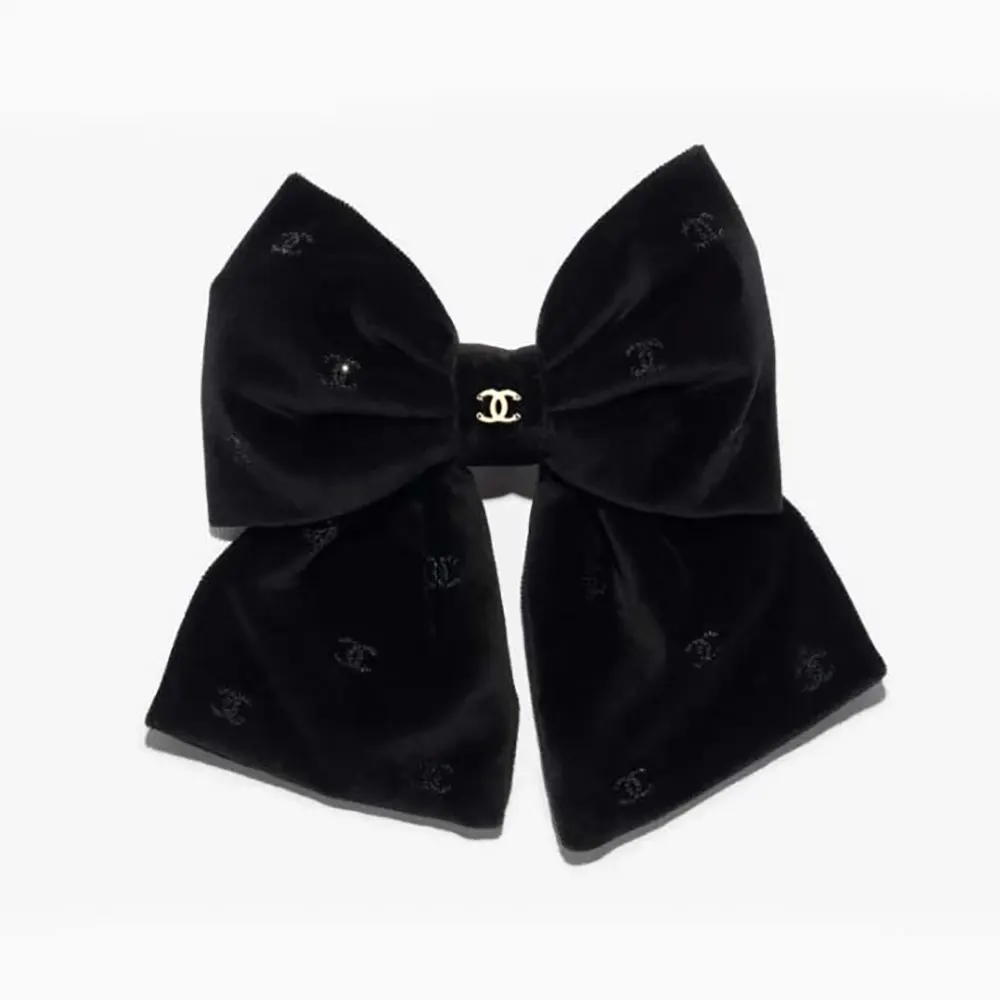 Chanel Women Bow Barrette Velvet Strass-Black AAB662B22961