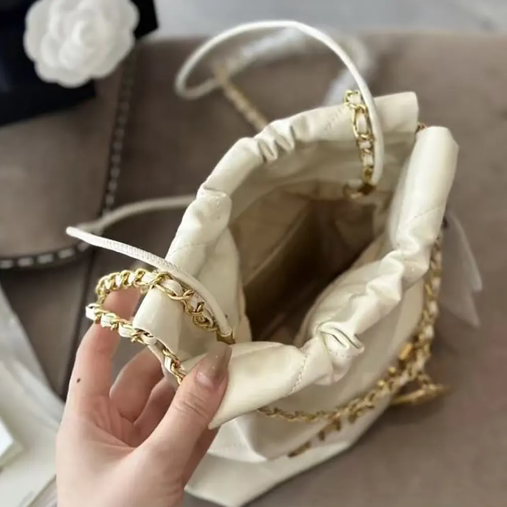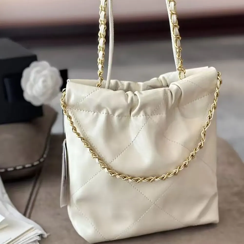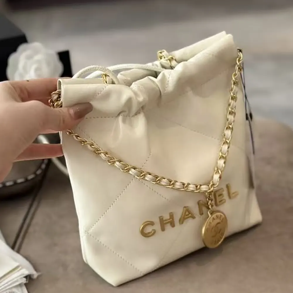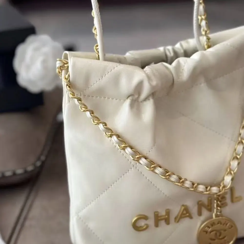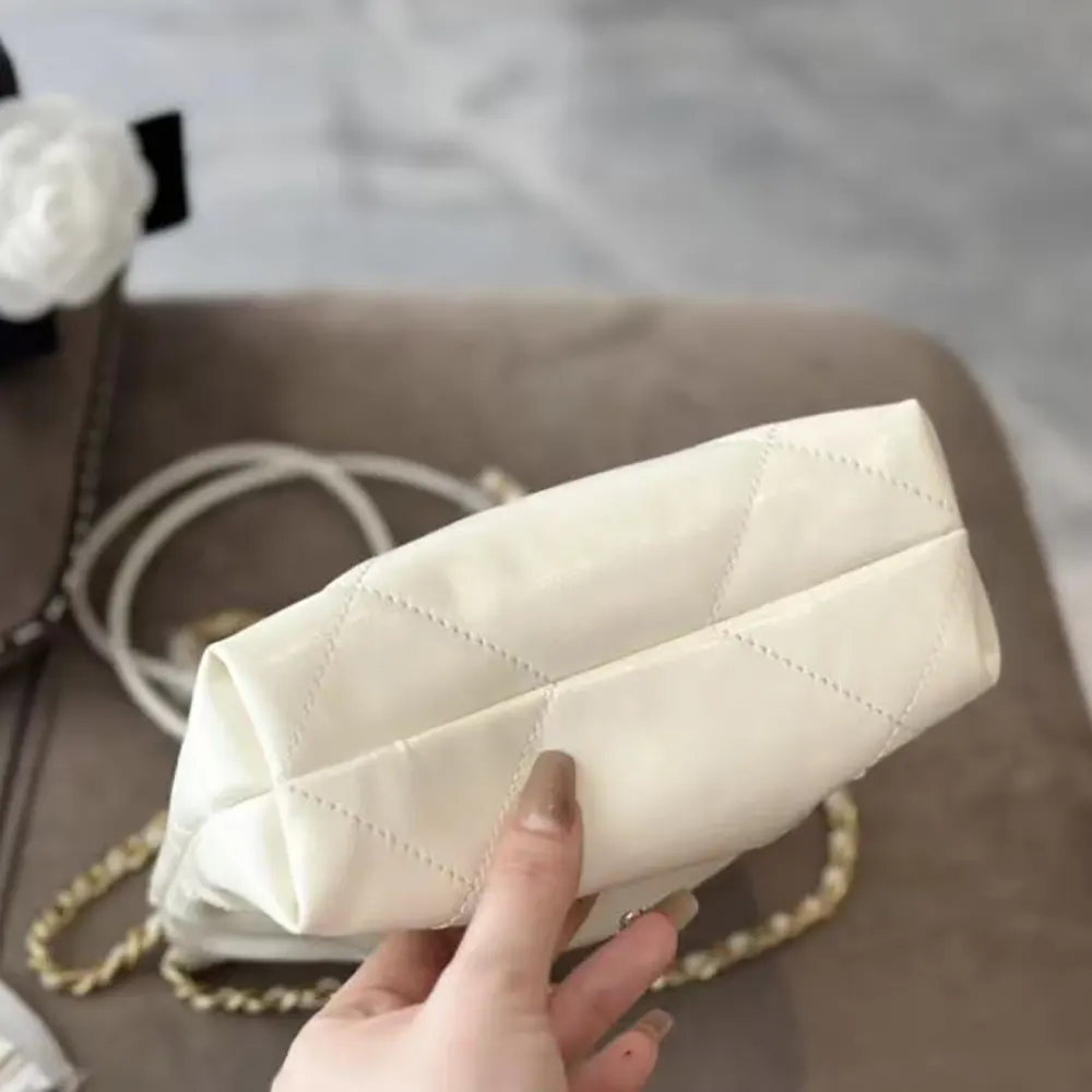 Chanel Women CC 22 Mini Handbag Shiny Calfskin Gold-Tone Metal-White