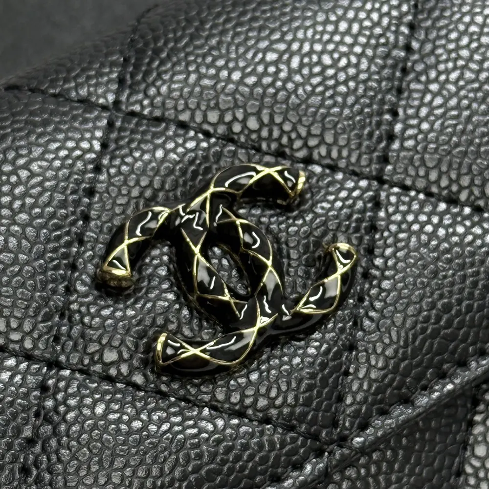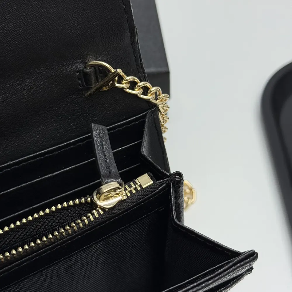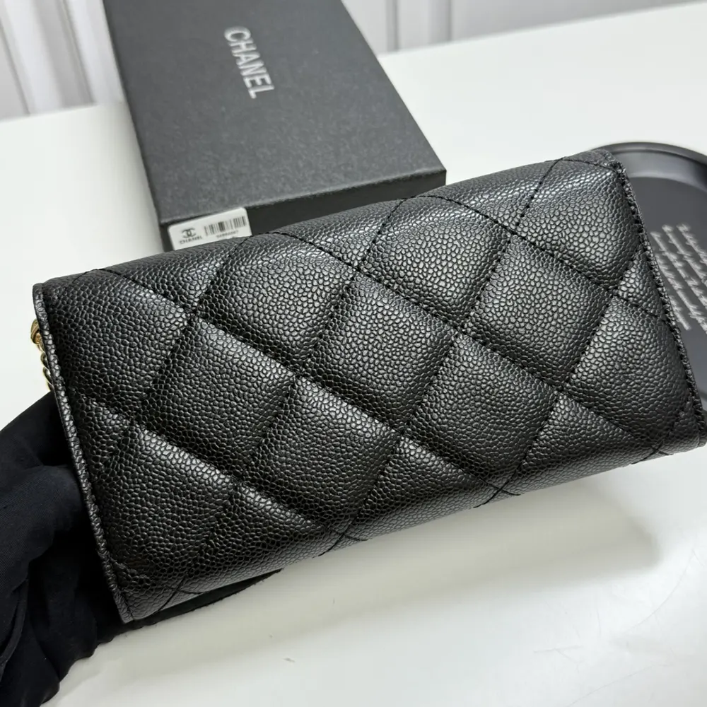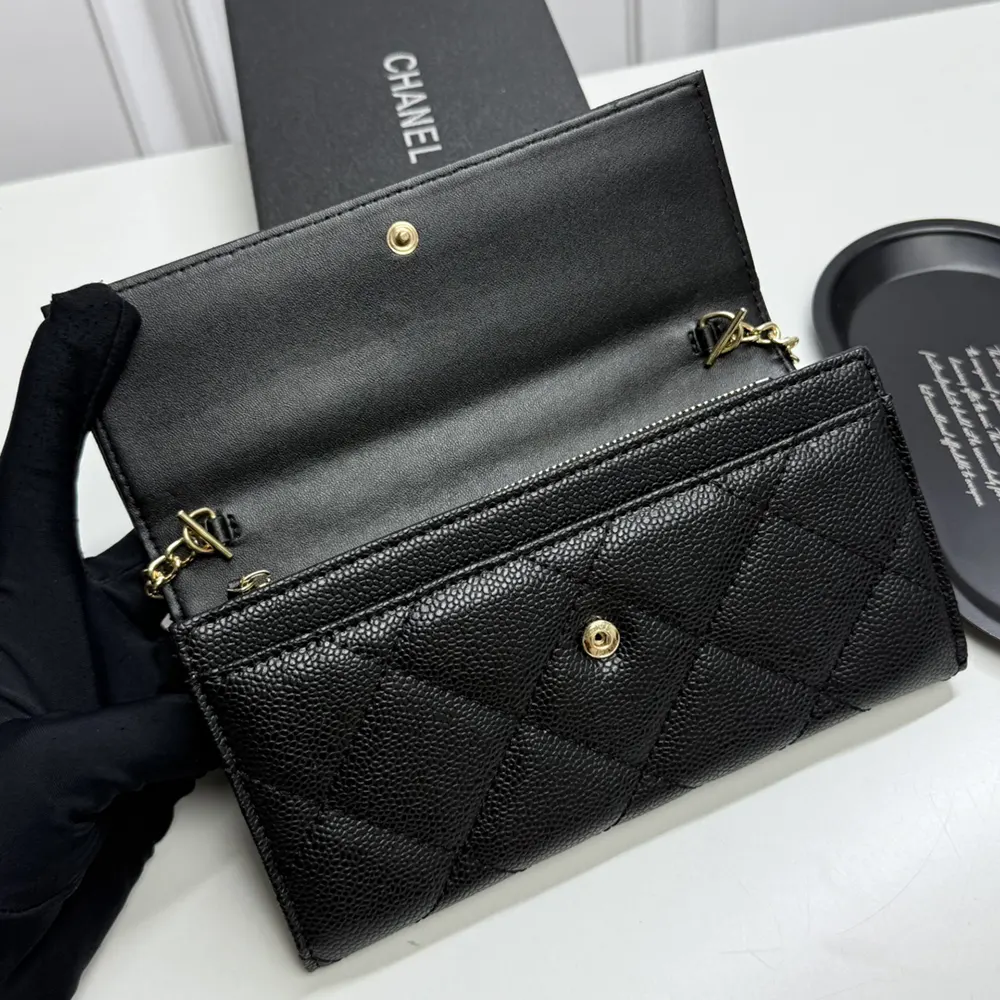 Chanel Women Classic Wallet with Chain Grained Shiny Calfskin Gold Tone Metal-Black