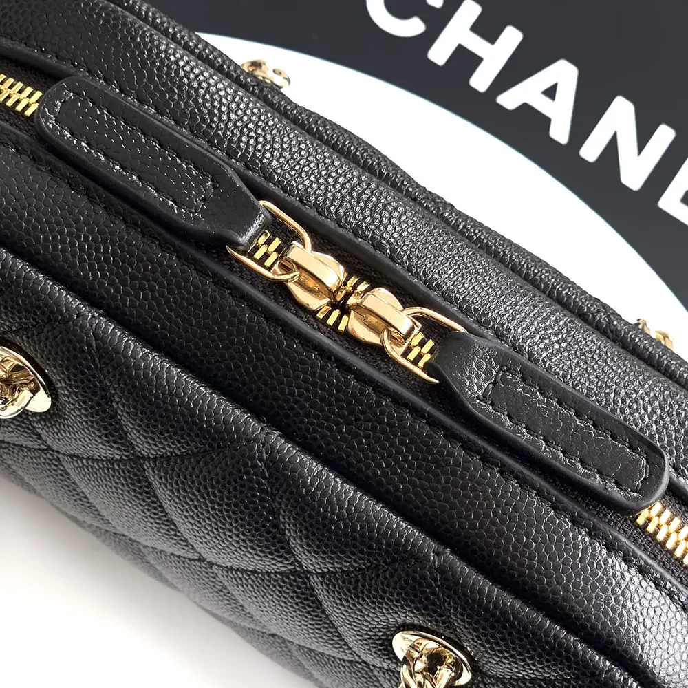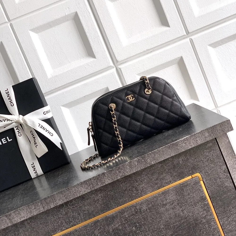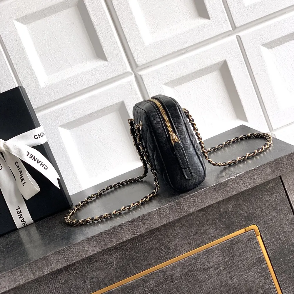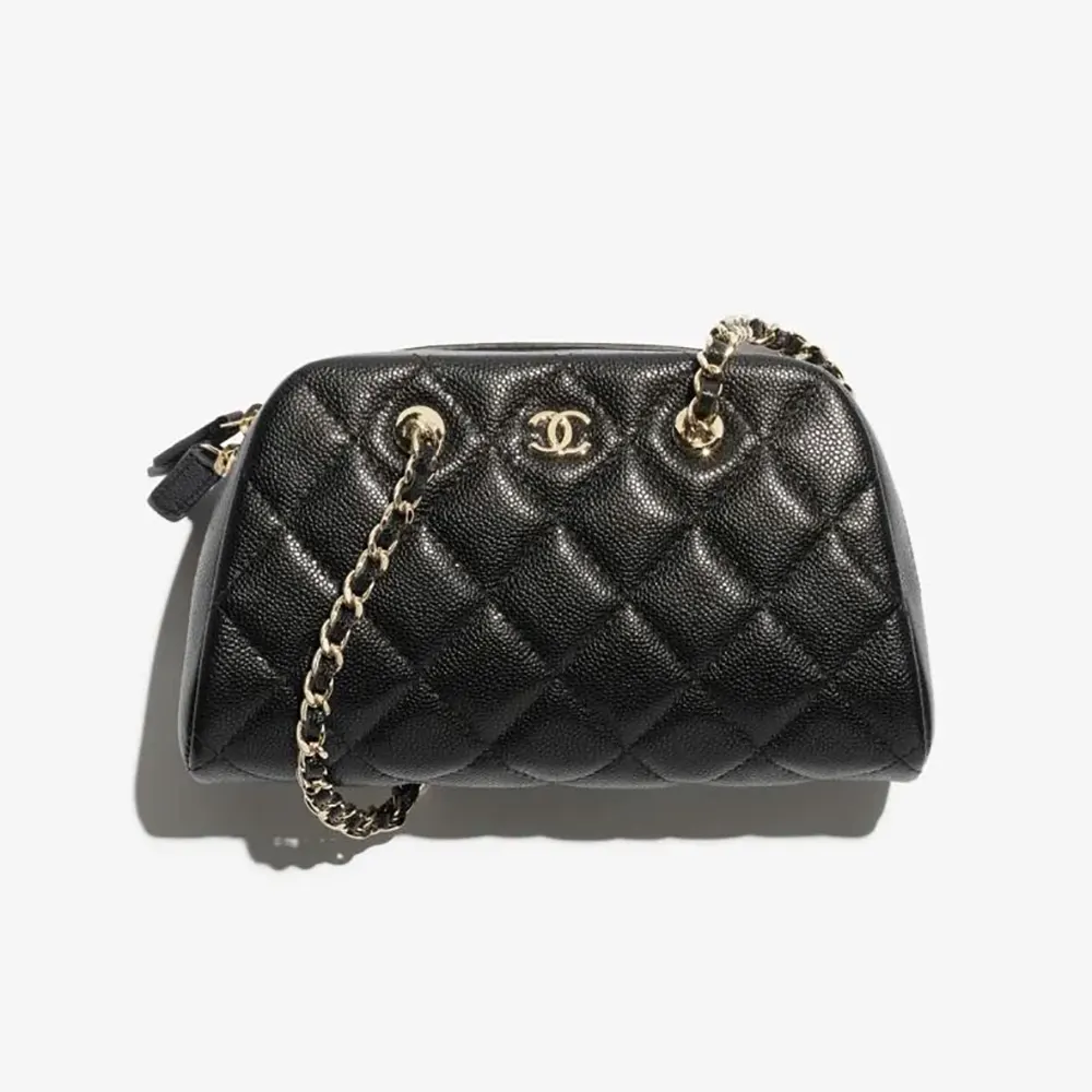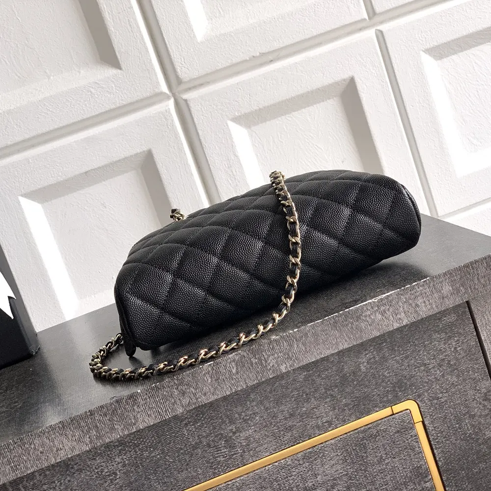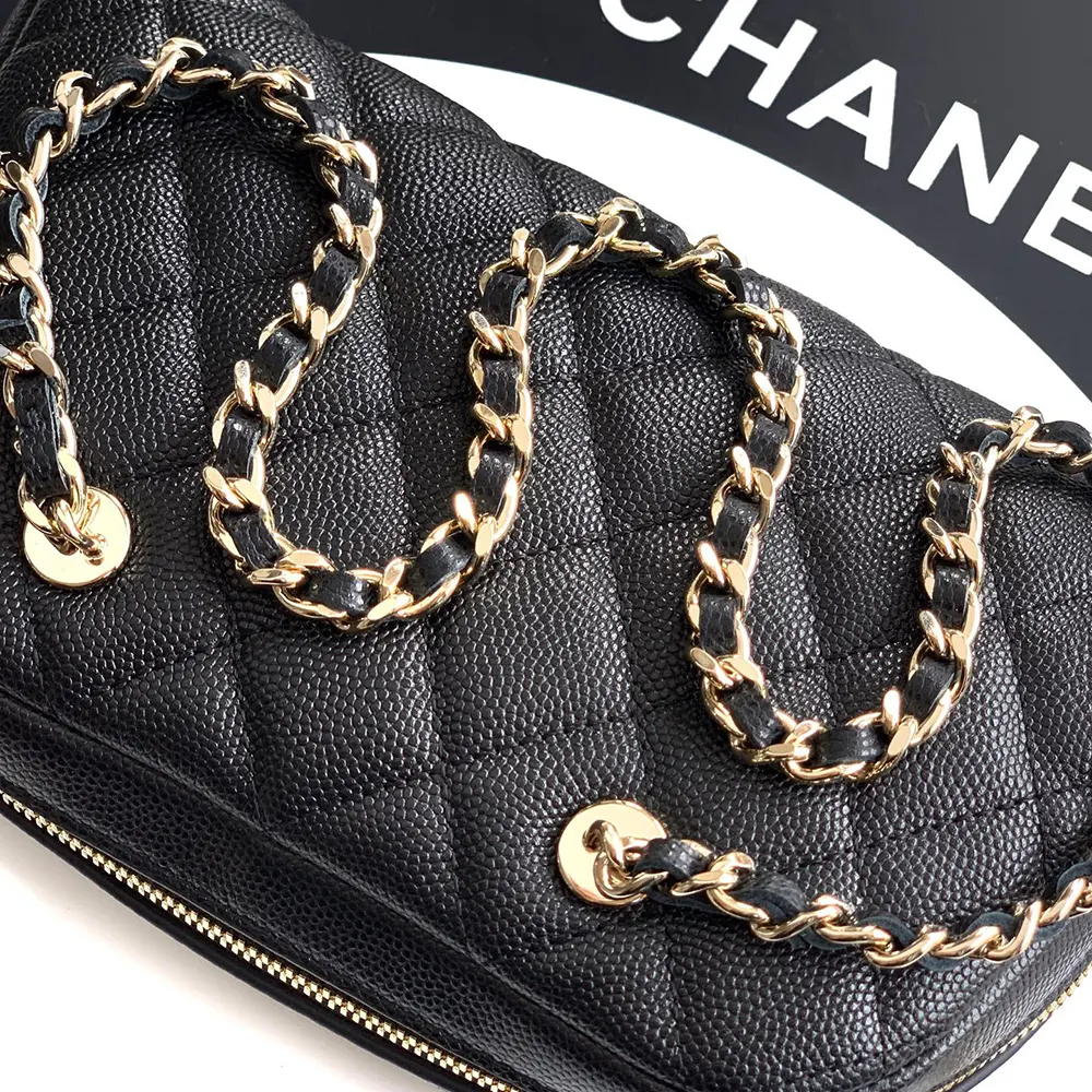 Chanel Women Clutch With Chain Grained Shiny Calfskin & Gold-Tone Metal