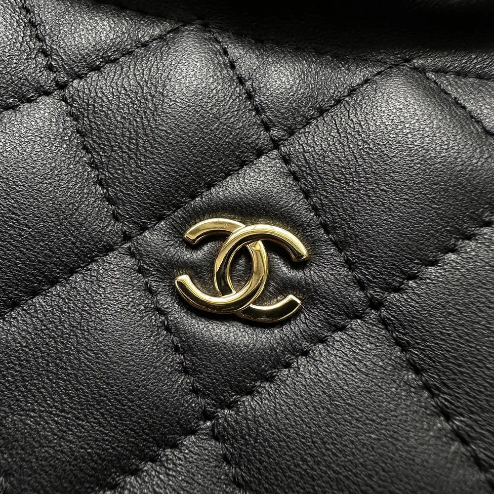 Chanel Women Clutch With Leather Strap Lambskin & Gold-Tone Metal-Black