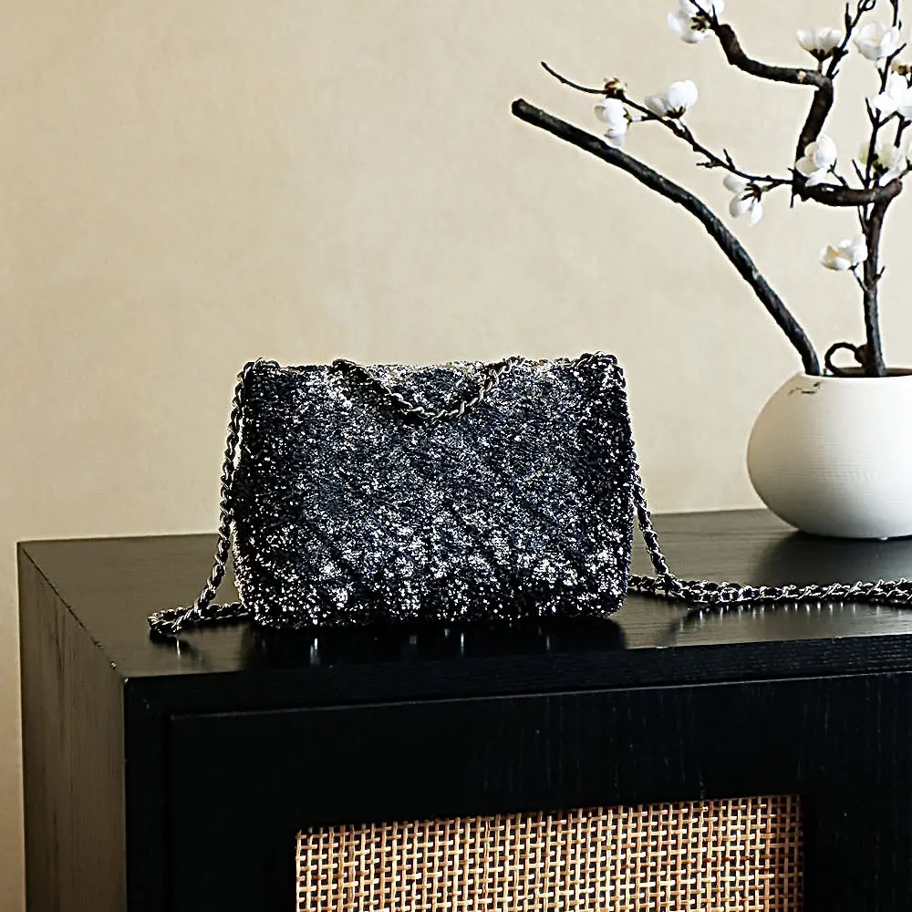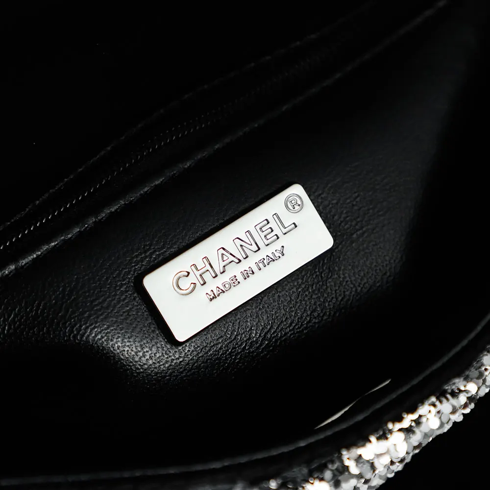 Chanel Women Evening Bag Quilted Gradient Sequins & Ruthenium-Finish Metal