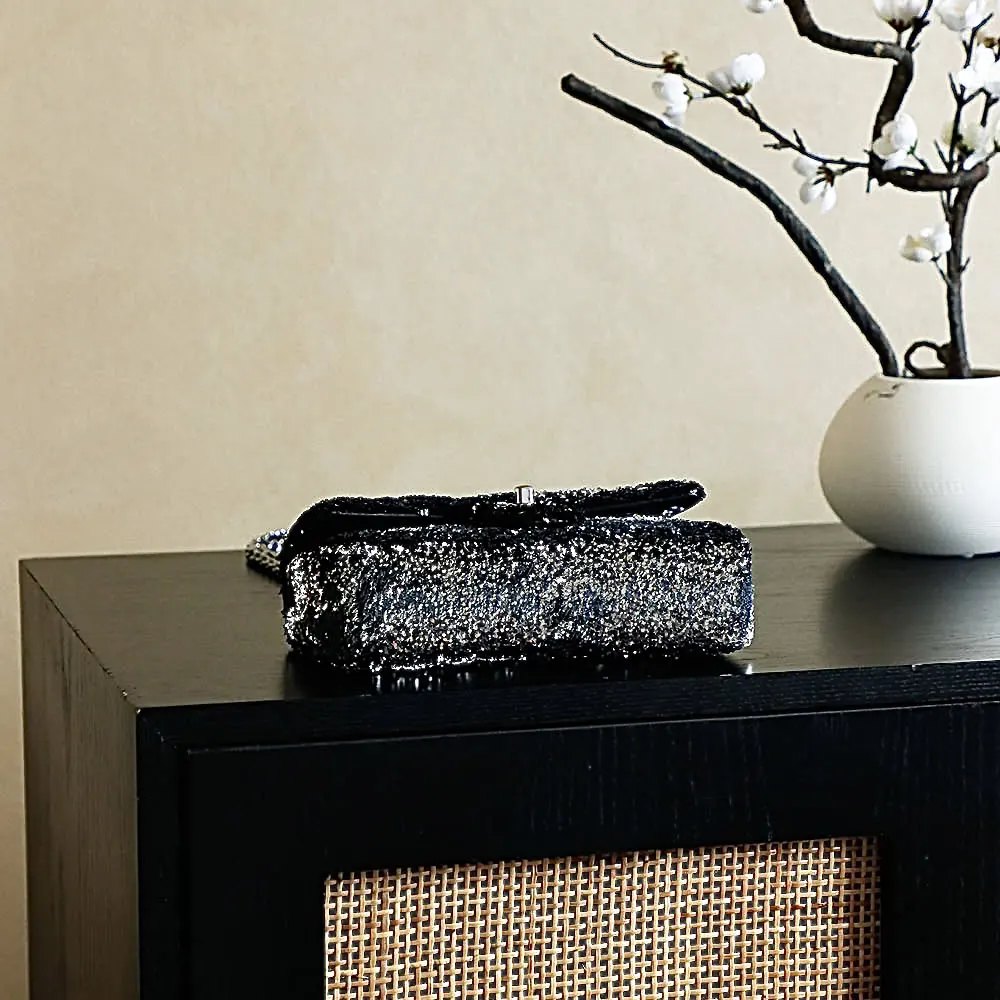 - Quilted Gradient Sequins & Ruthenium-Finish Metal