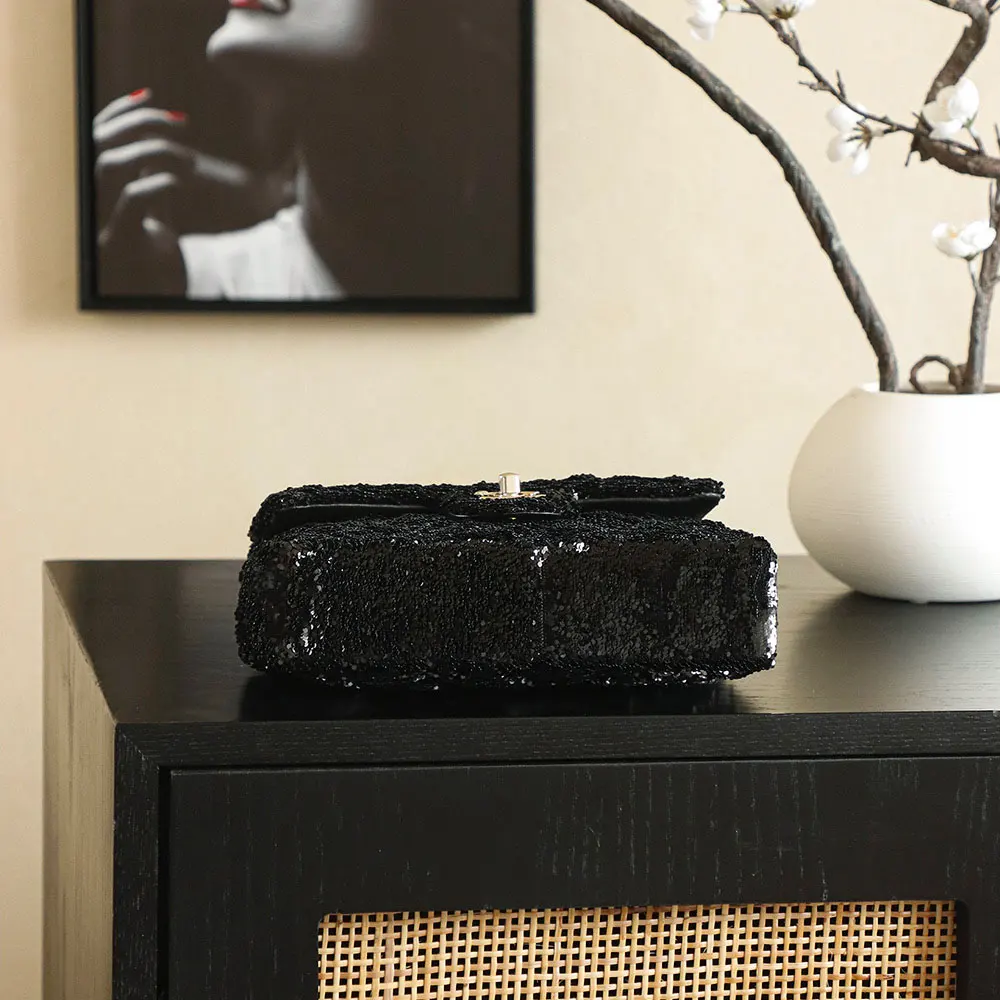Chanel Women Evening Bag Quilted Sequins & Gold-Tone Metal-Black