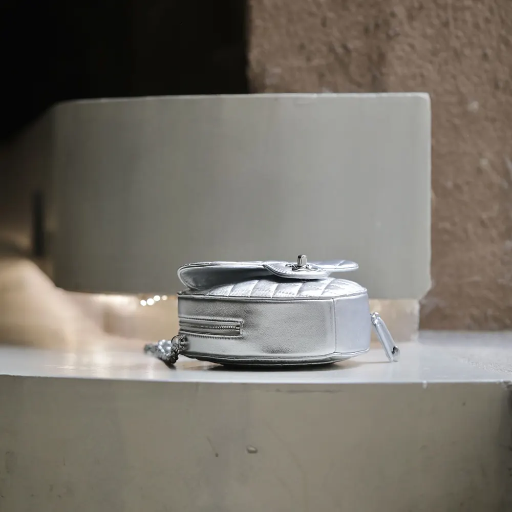 Chanel Women Heart Bag Metallic Lambskin Silver-Tone Metal AS5764