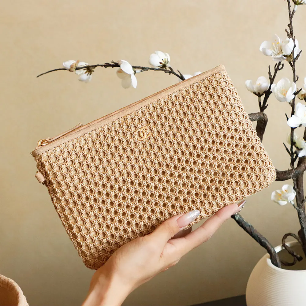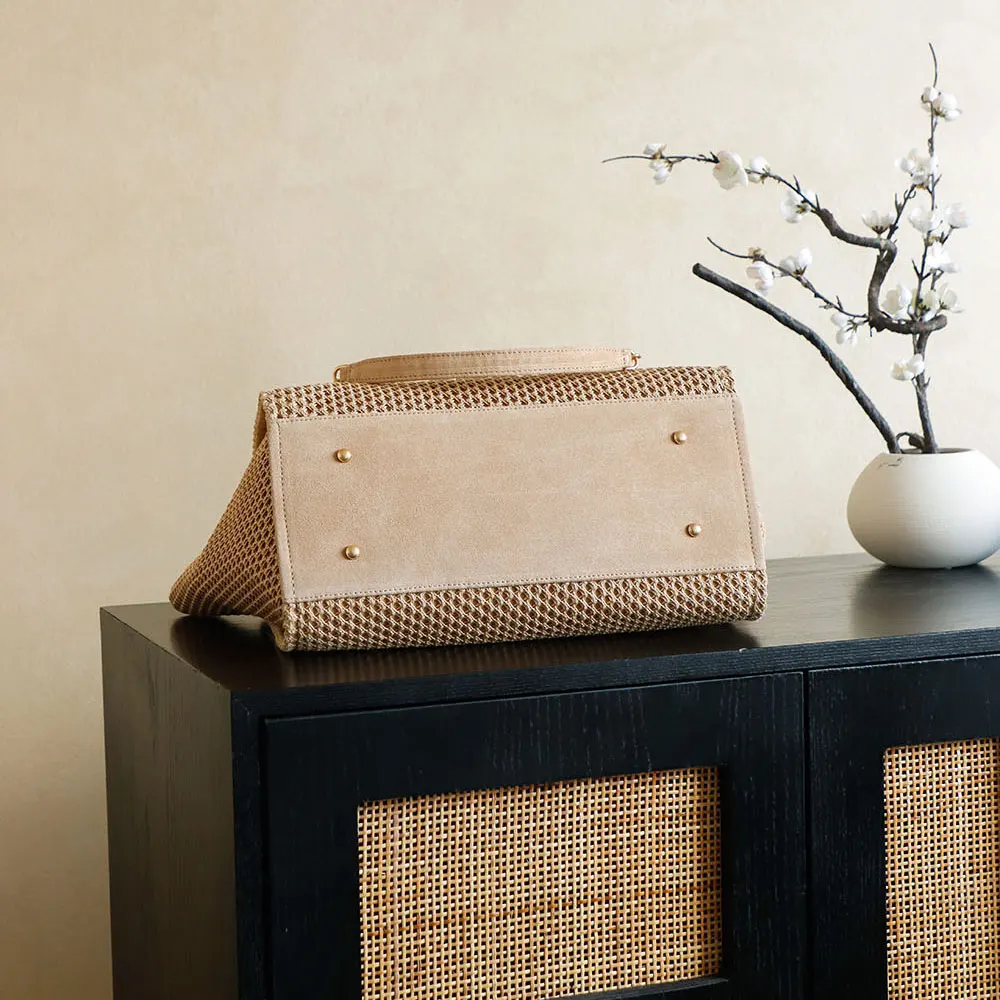 - MATERIAL: Braided Straw, Suede Calfskin & Gold-Tone Metal