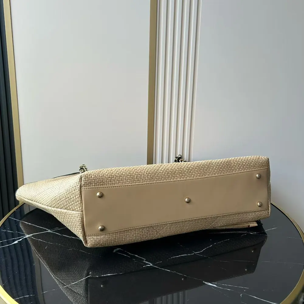 Chanel Women Maxi Shopping Bag Braided Raffia Calfskin & Gold-Tone Metal-Dark Beige