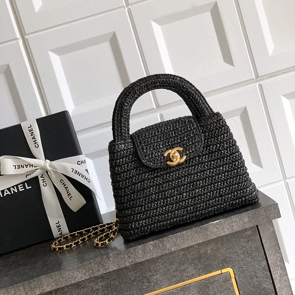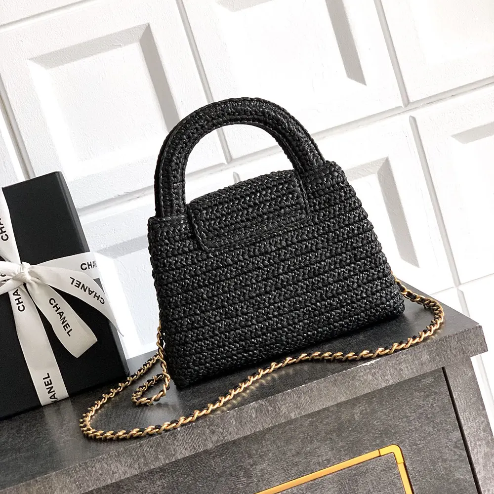 Be the first to review “Chanel Women Mini Shopping Bag Braided Raffia & Gold-Tone Metal-Black” Cancel reply