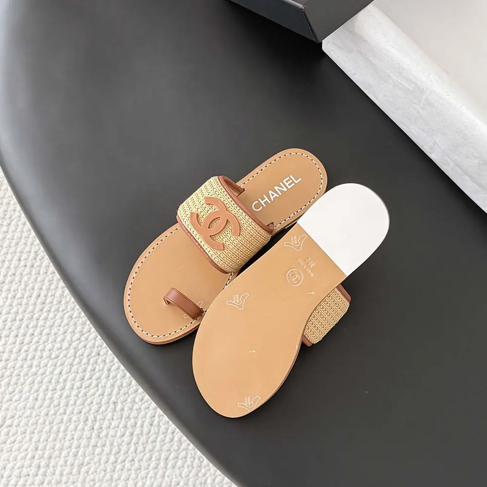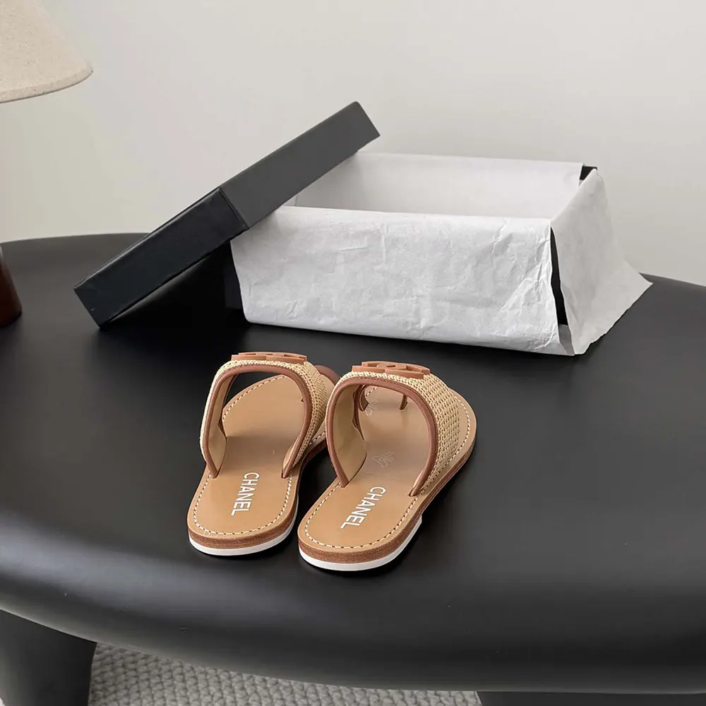 Chanel Women Mules Raffia Lambskin-Brown G47069