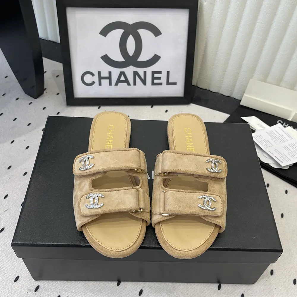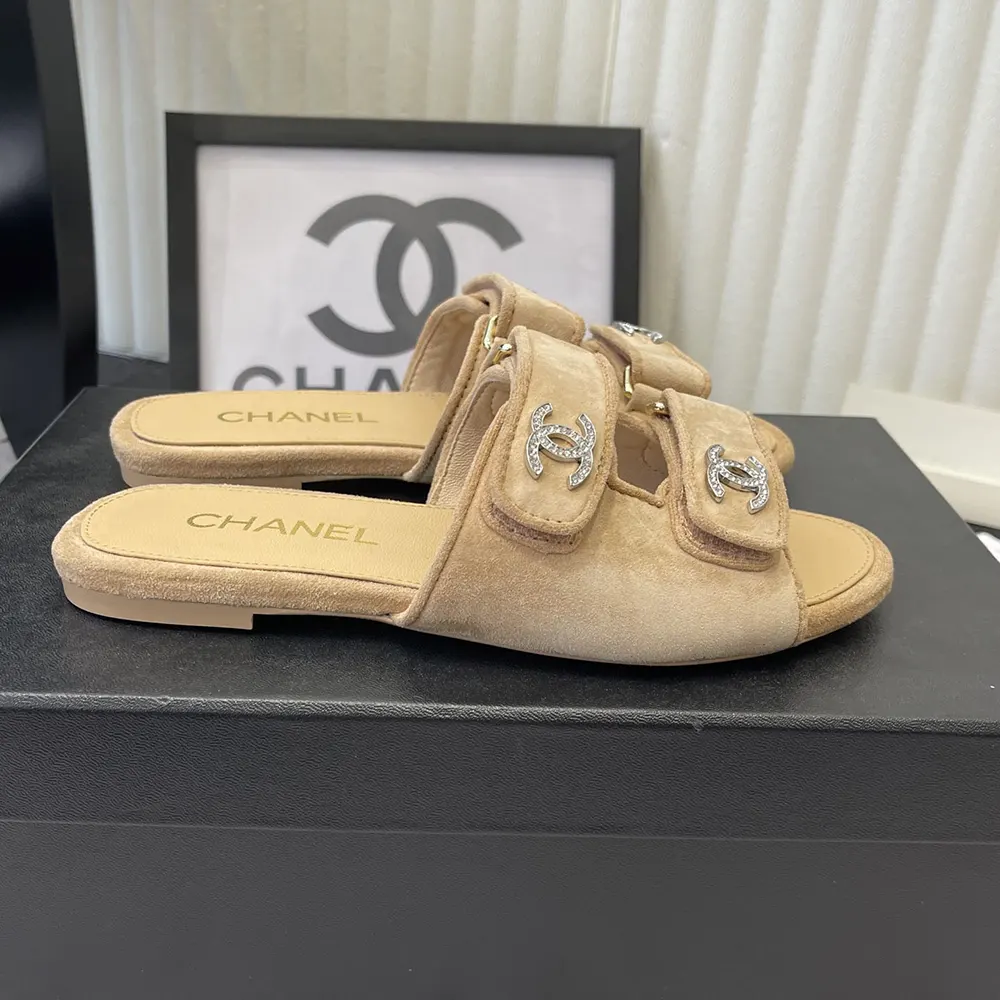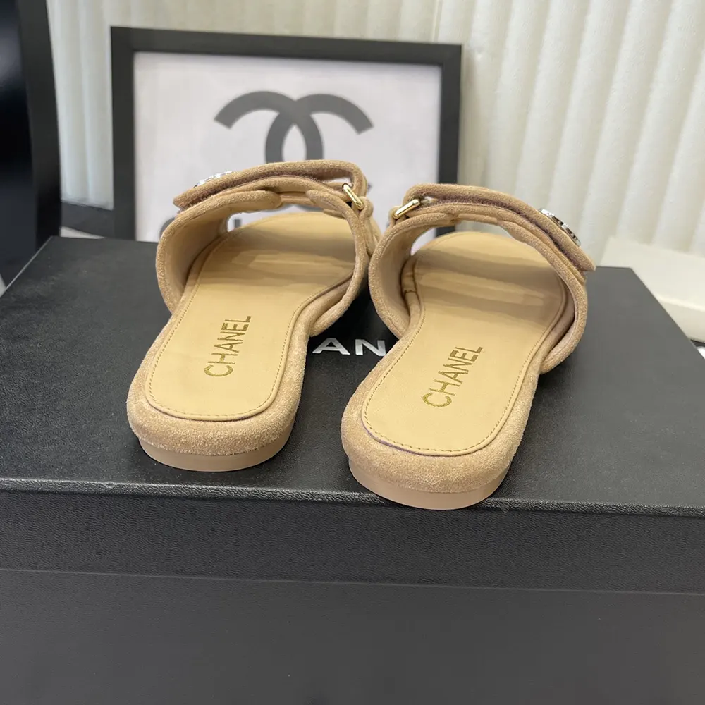 Chanel Women Mules Suede Kidskin-Beige G47043B23355