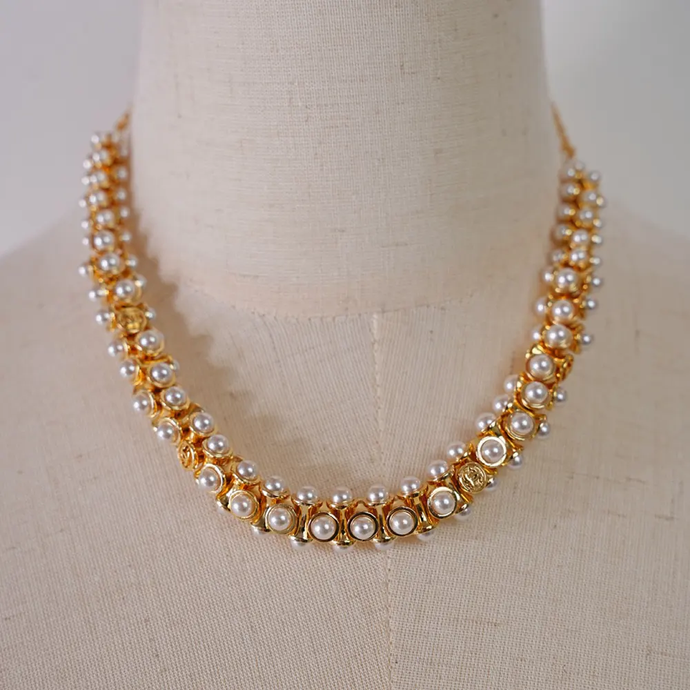 Be the first to review “Chanel Women Necklace Metal & Glass Pearls Gold & Pearly White ABH232” Cancel reply