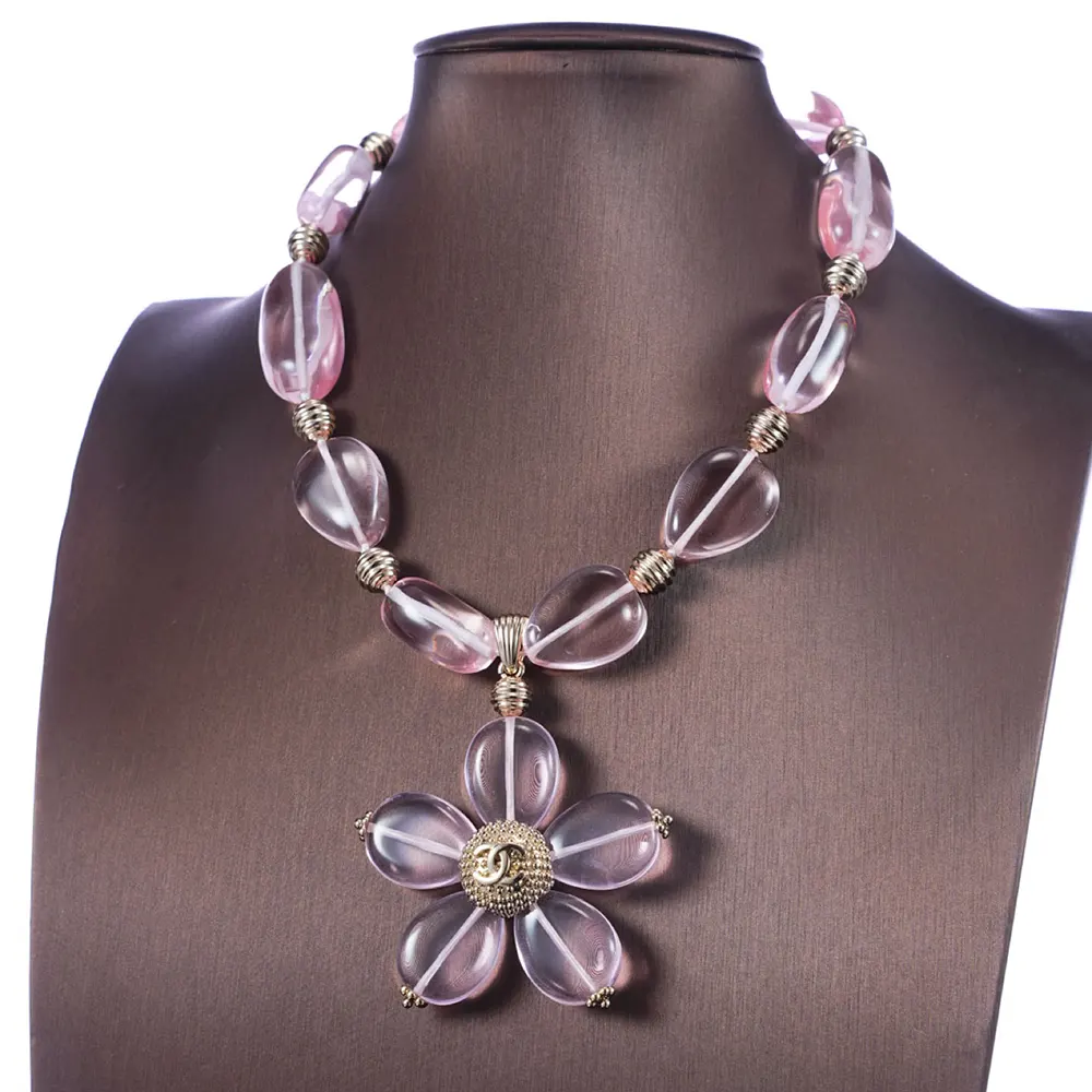 Chanel Women Necklace Metal Resin & Glass Gold & Pink ABG771