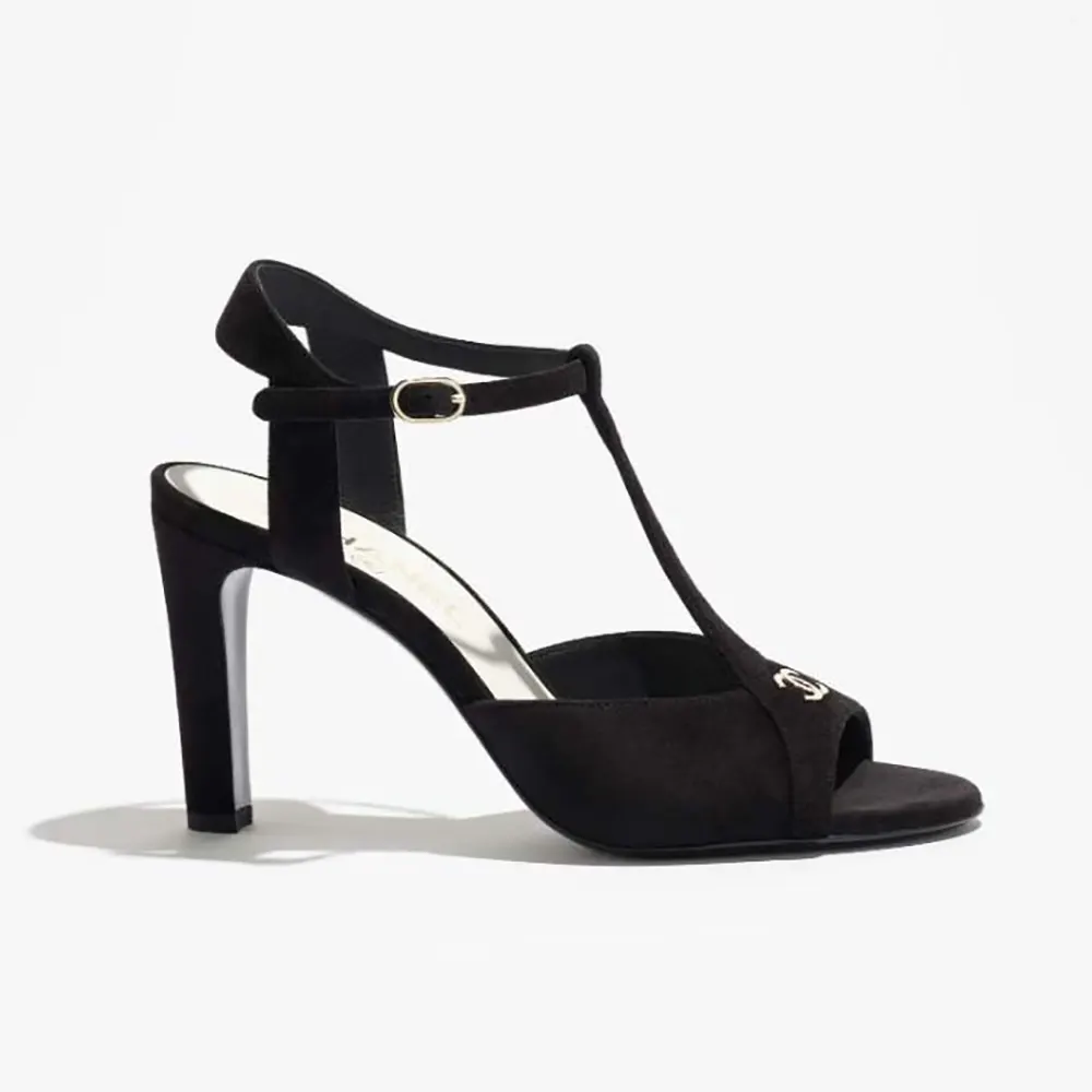 Chanel Women Sandals Suede Kidskin-Black G47030B23297