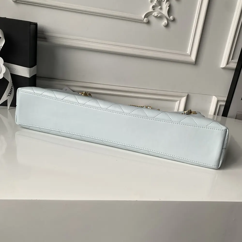 Chanel Women Shopping Bag Lambskin & Gold-Tone Metal-Light Blue