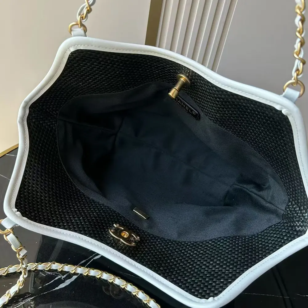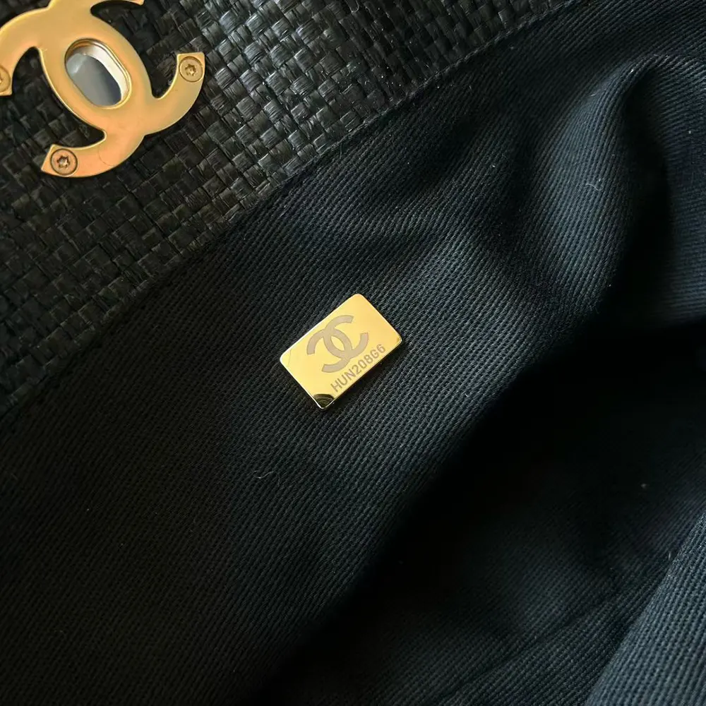 Chanel Women Small Shopping Bag Braided Raffia Calfskin & Gold-Tone Metal-Black
