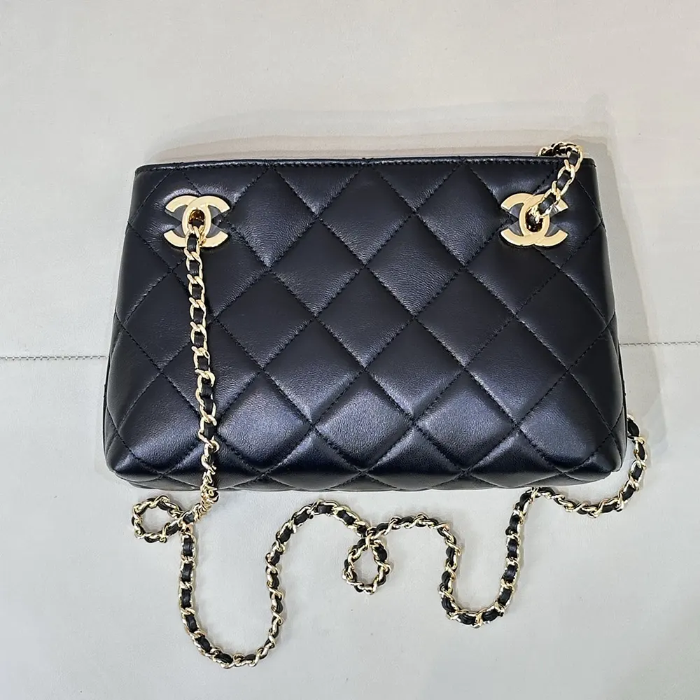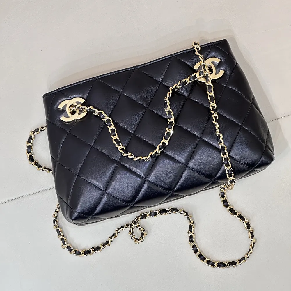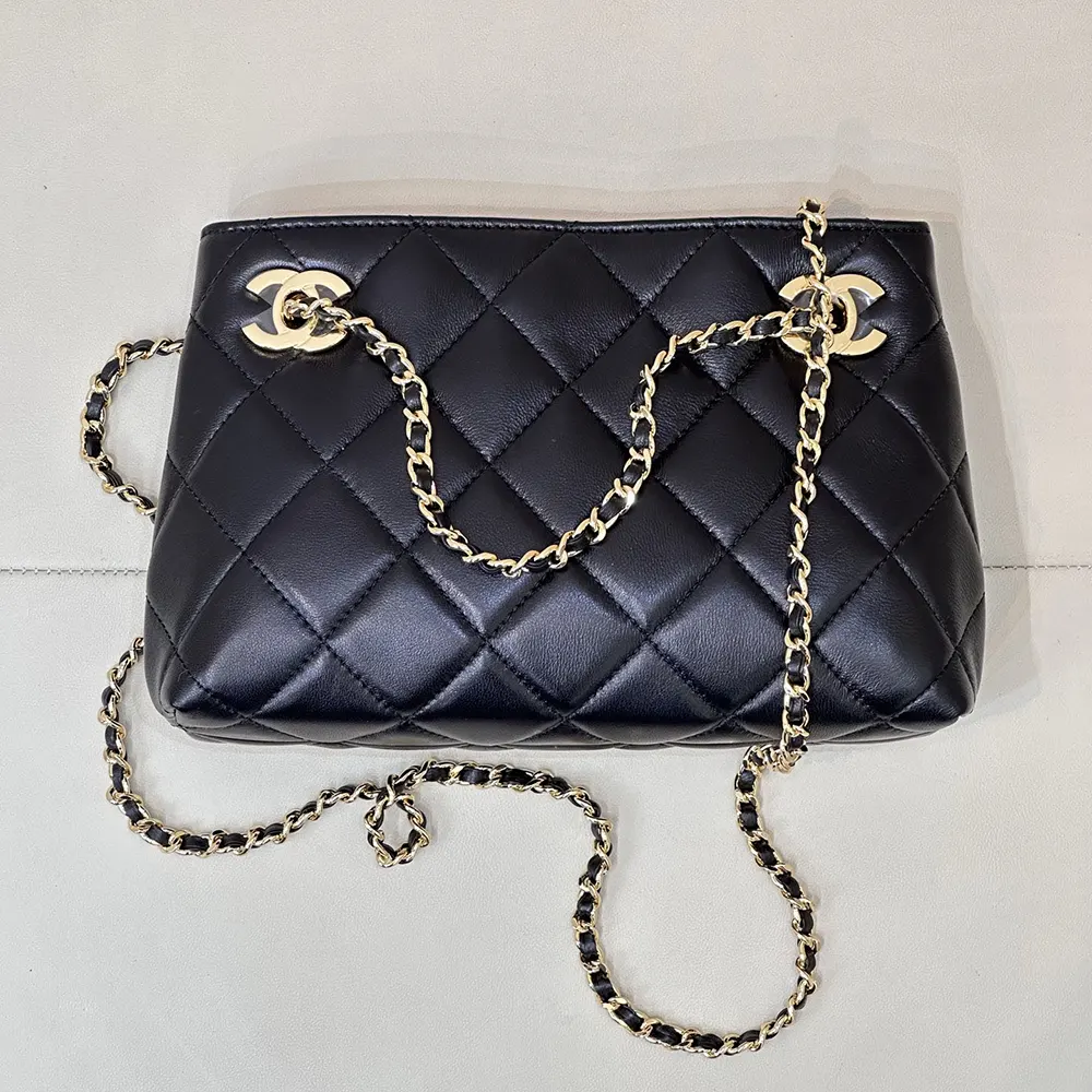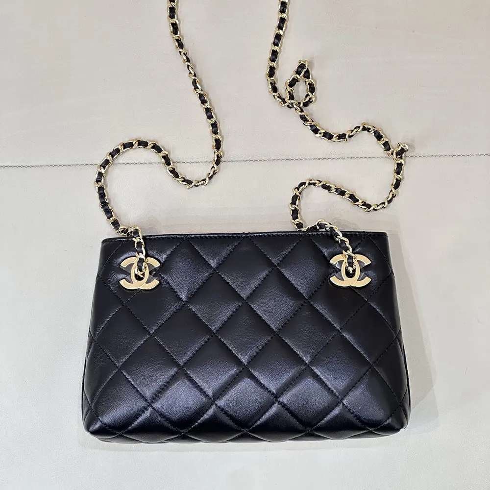 Chanel Women Small Shopping Bag Lambskin & Gold-Tone Metal-Black