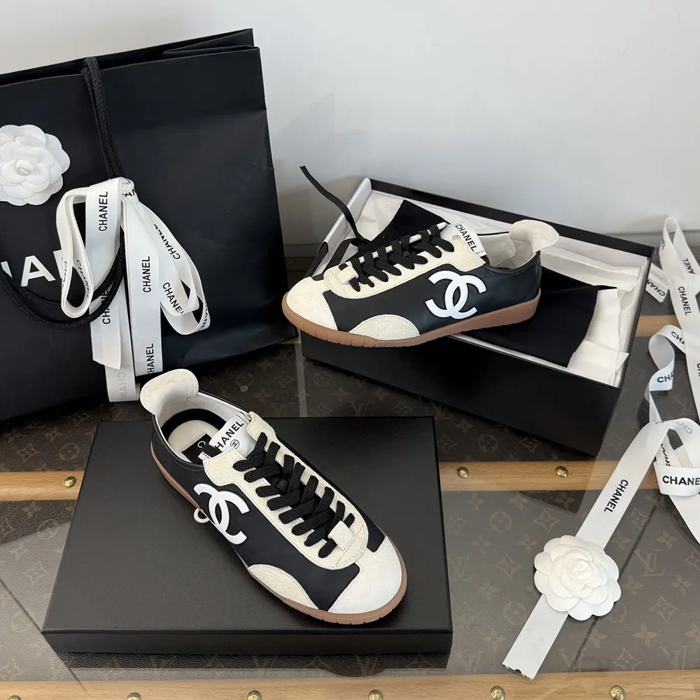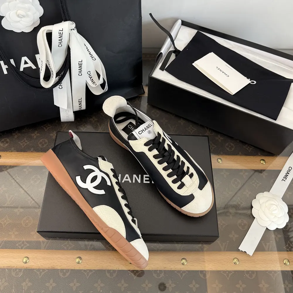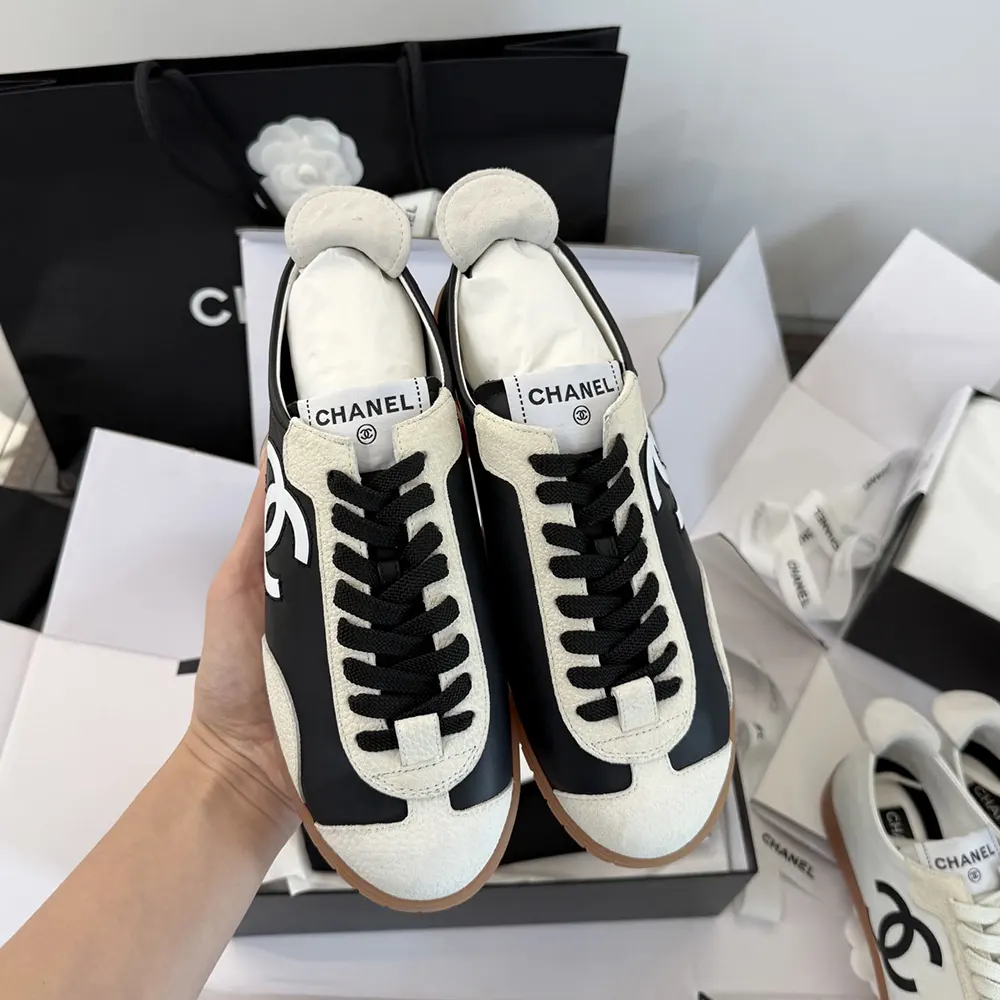 Chanel Women Sneakers Calfskin & Embossed Suede Calfskin Black & White G47125