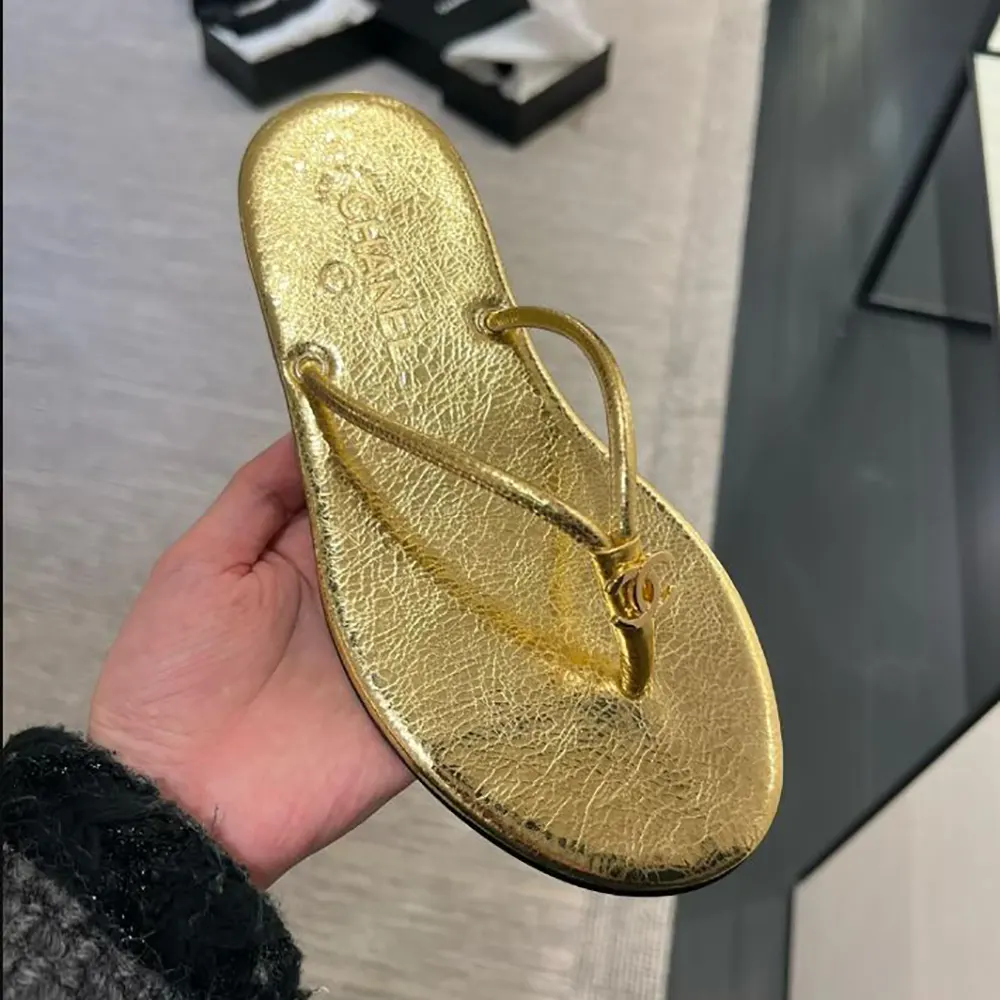 Chanel Women Thongs Crackled Laminated Calfskin-Gold G47243