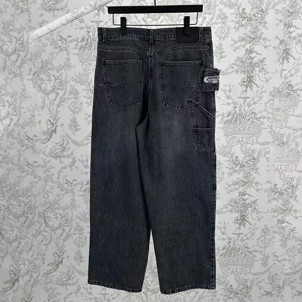 Dior Men CD Carpenter Jeans Black Cotton Twill Laser-Faded Vintage Effect Heavy-Weight Denim