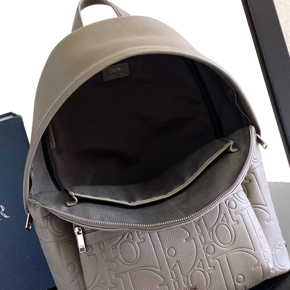 Dior Men Rider 2.0 Zipped Backpack Gray Dior Gravity Leather and Gray Grained Calfskin