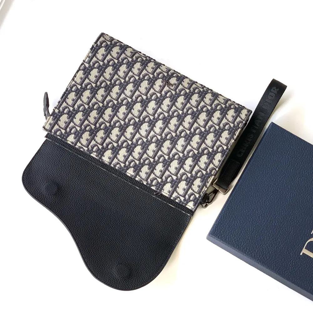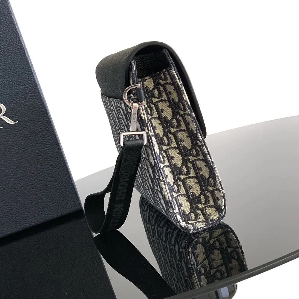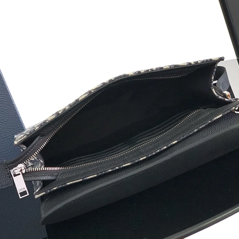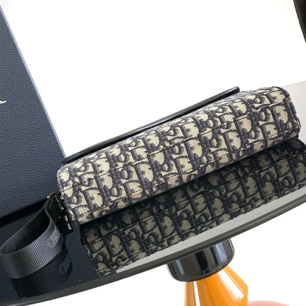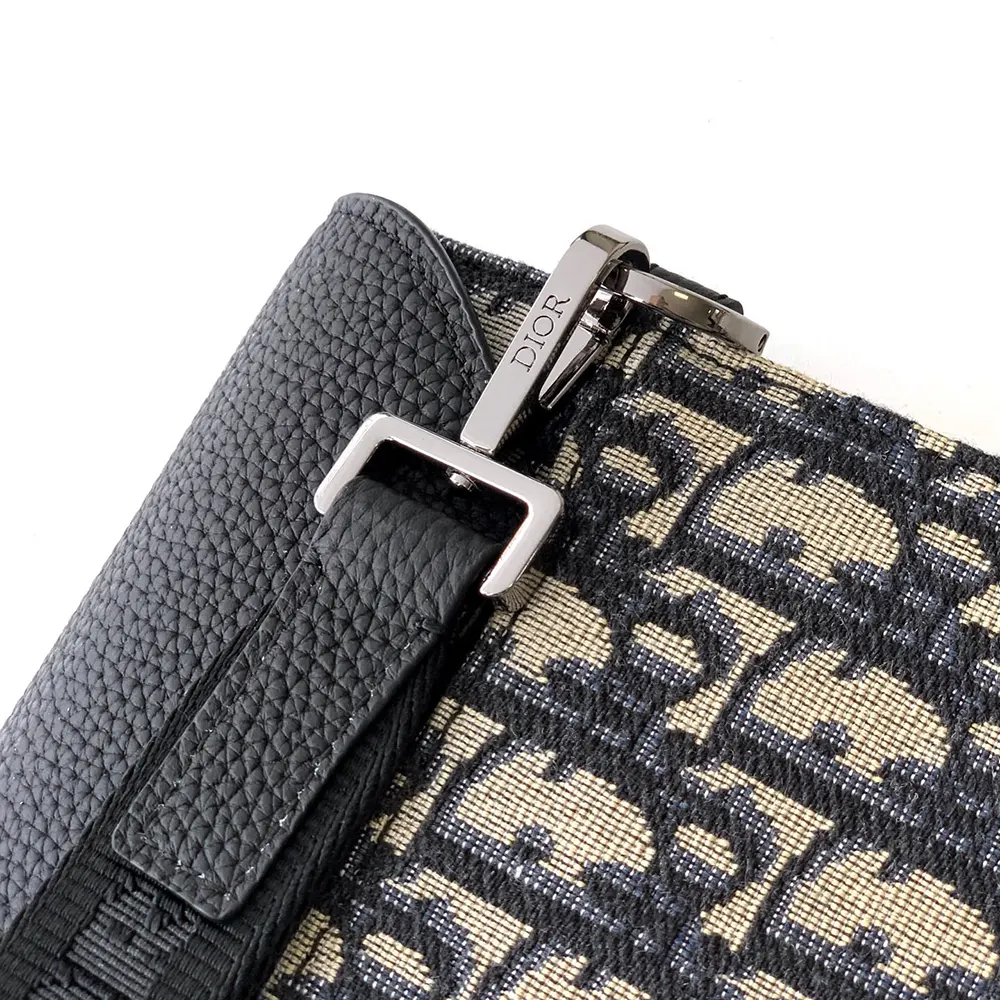 Dior Men Saddle A5 Triangle Pouch Beige and Black Dior Oblique Jacquard with Black Grained Calfskin
