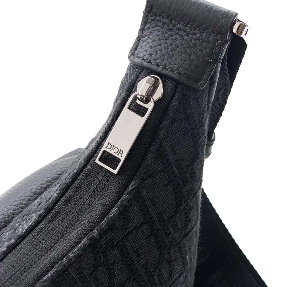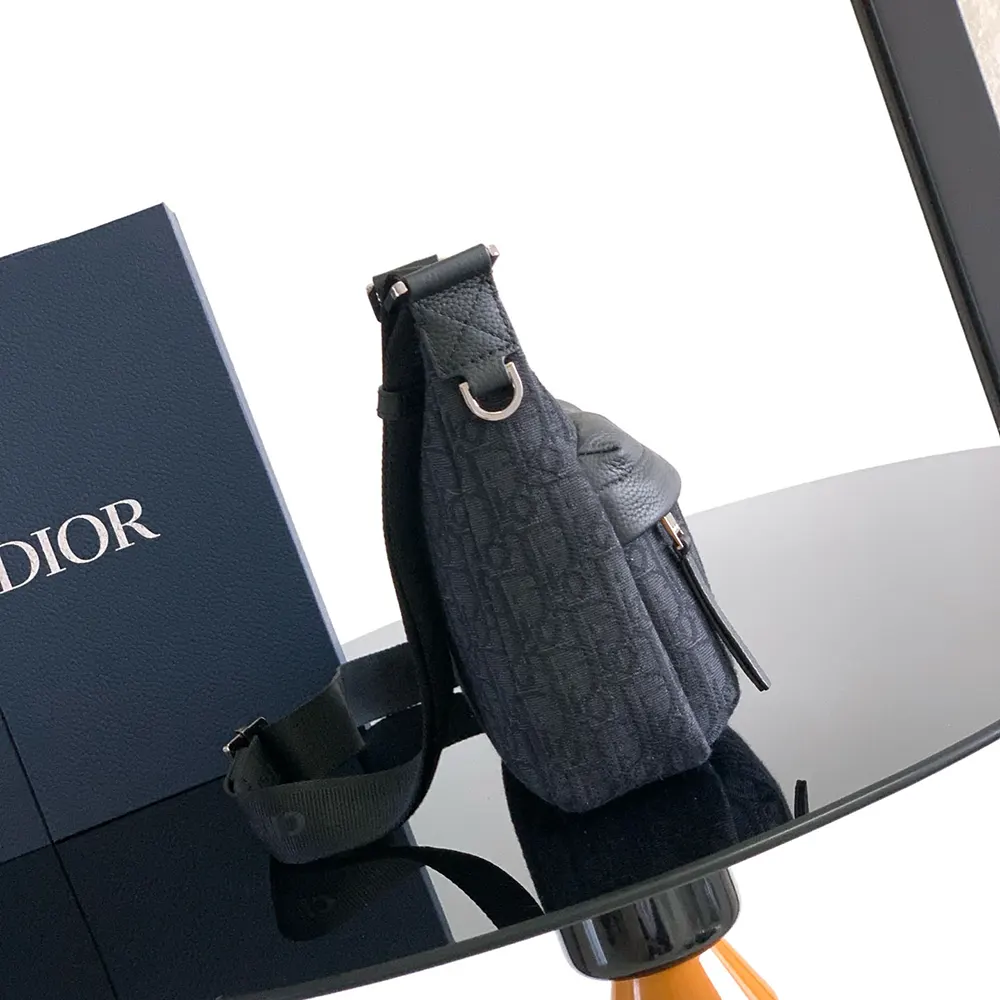 Dior Men Small Rider Soft Hobo Bag Black Dior Oblique Jacquard and Black Grained Calfskin