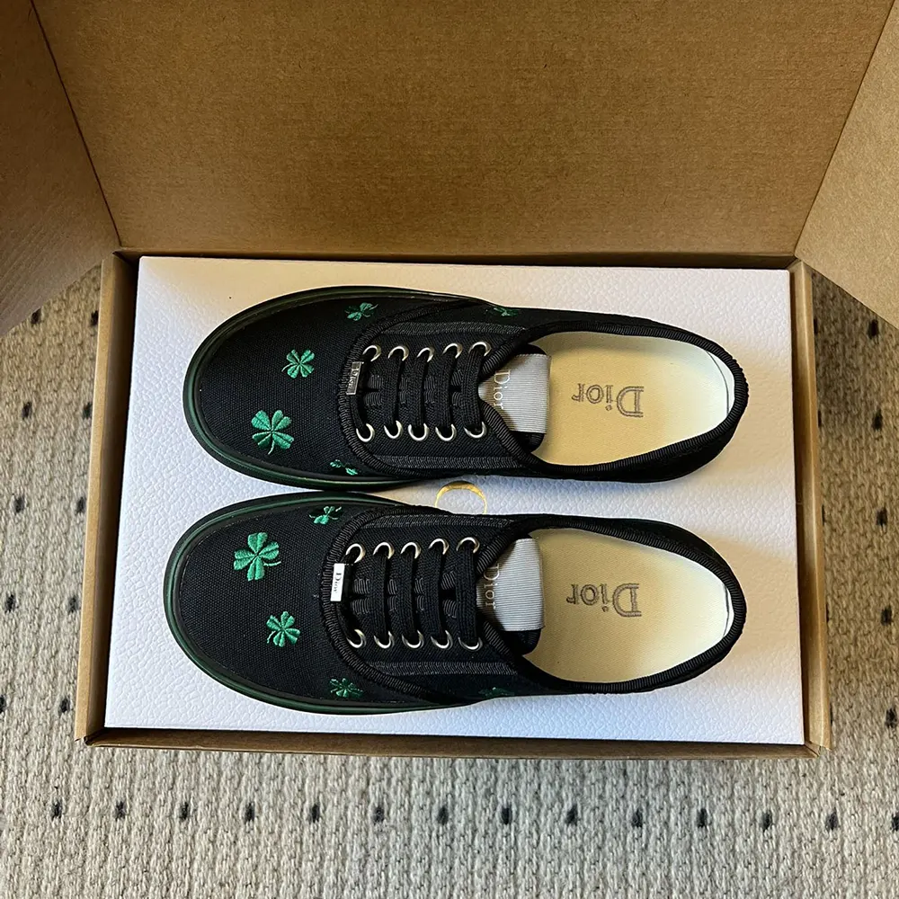 Dior Unisex Saltwind Sneaker Black Cotton Embroidered with Bright Green Dior Clover Motif