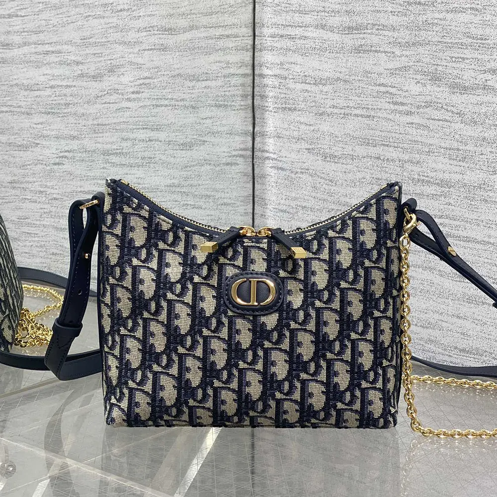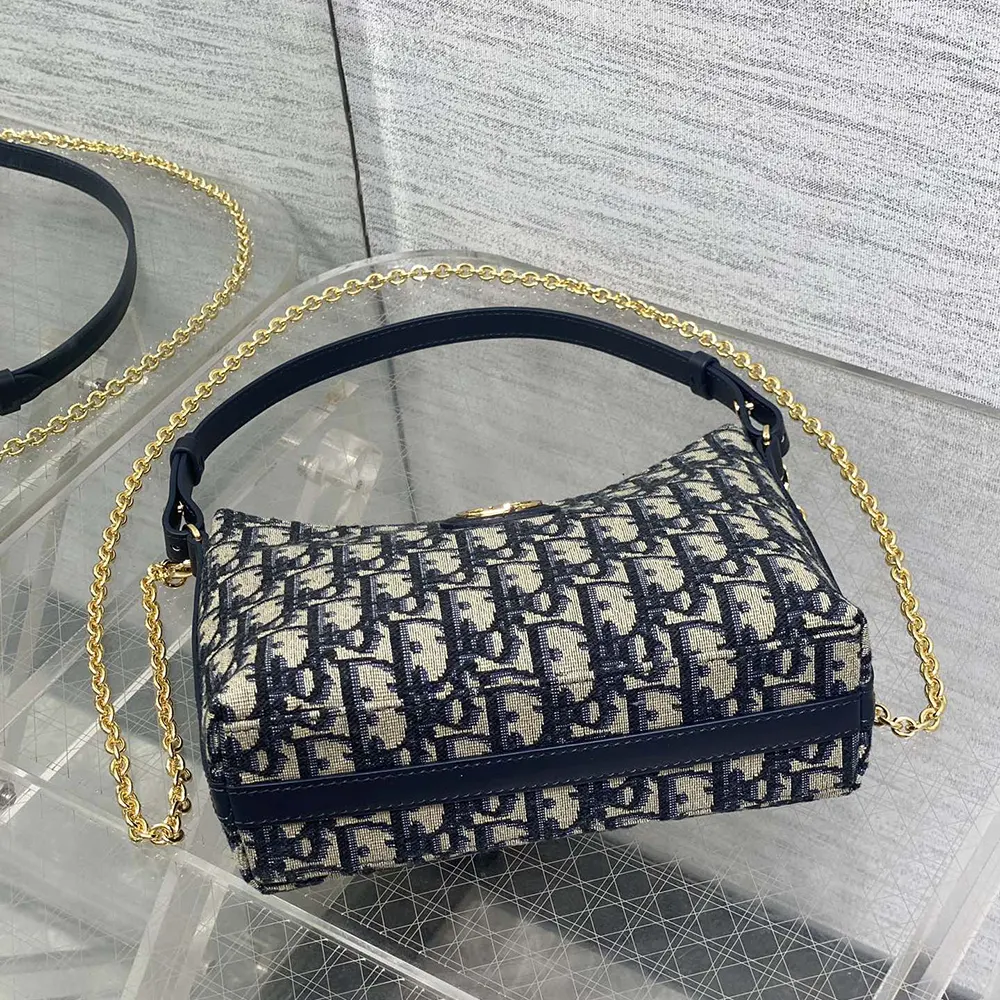 Dior Women 30 Montaigne Diorling Mini Bag with Chain Blue Dior Oblique Jacquard