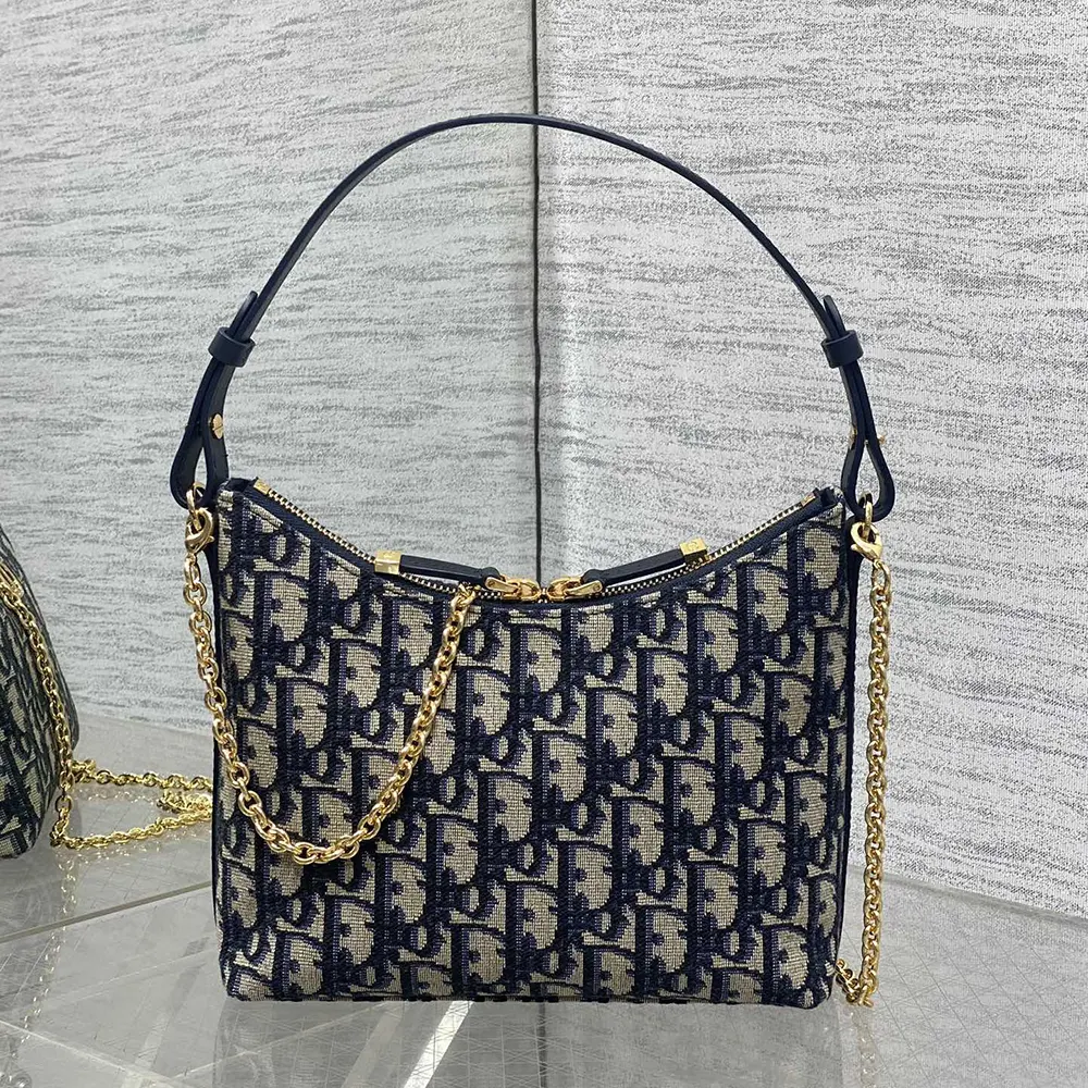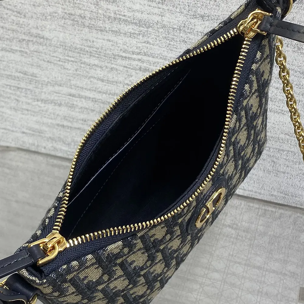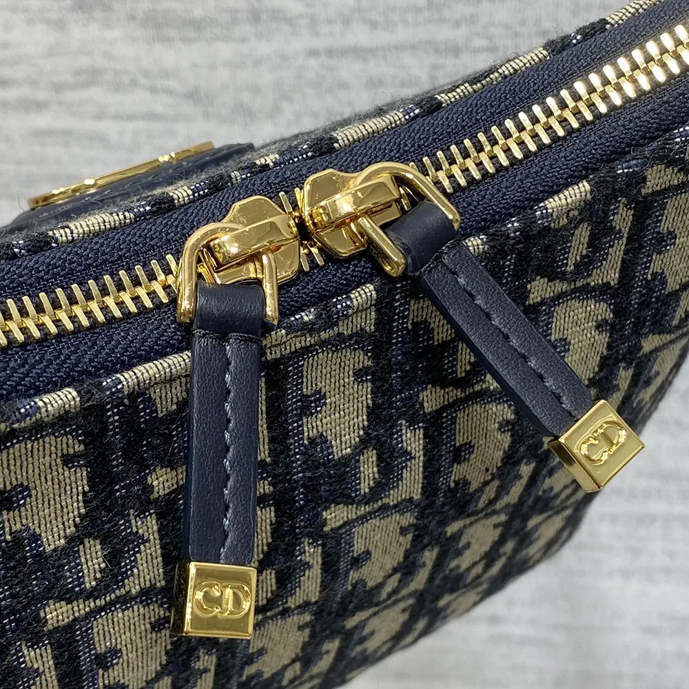 - Crafted in blue Dior Oblique jacquard, it is enhanced by a gold-finish metal CD signature on the front and features a zip compartment to hold all the essentials.