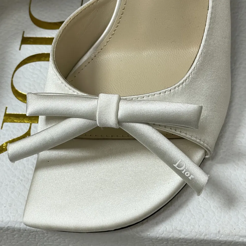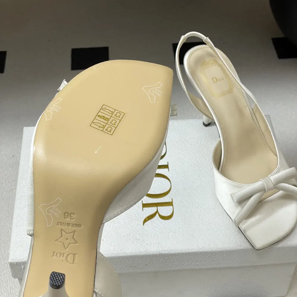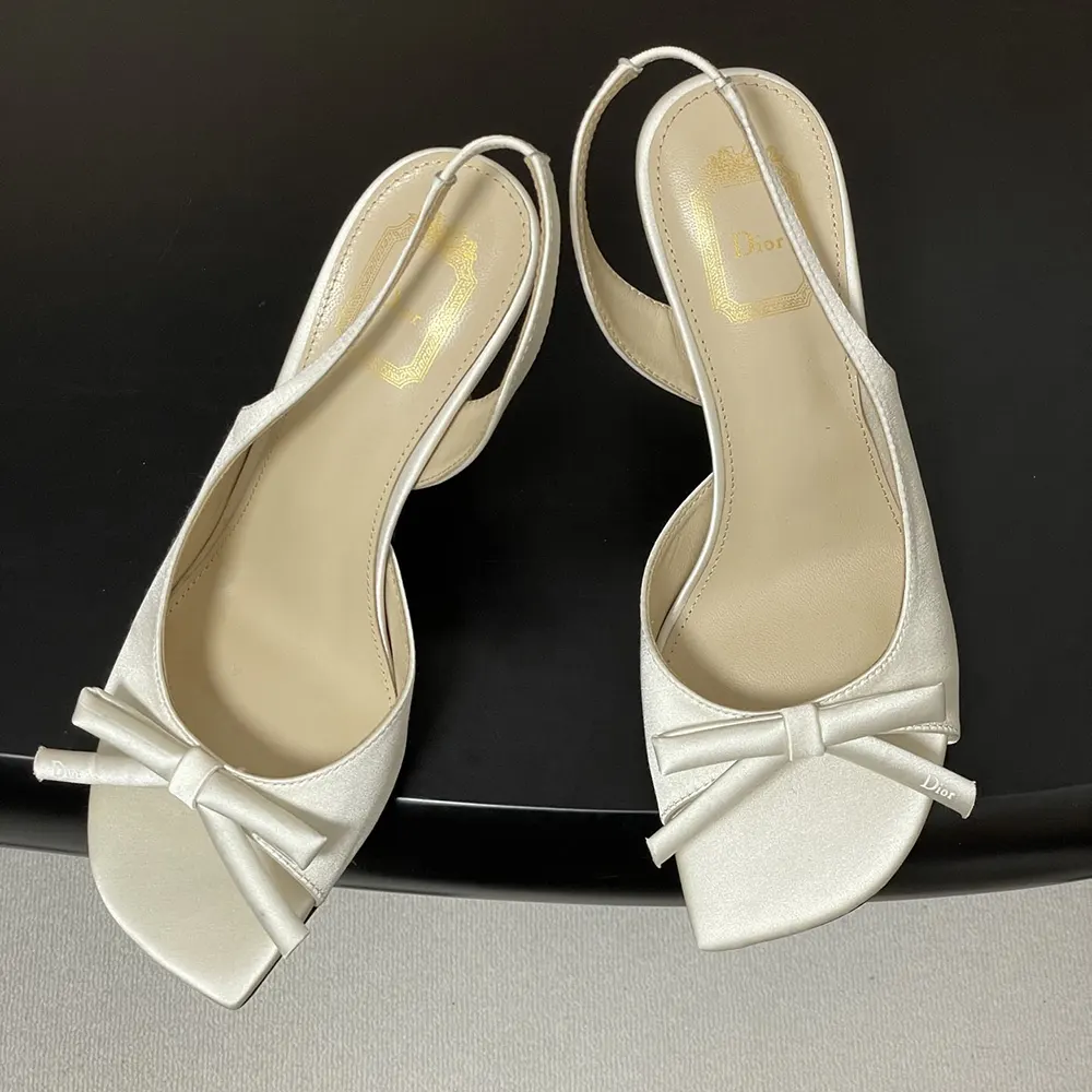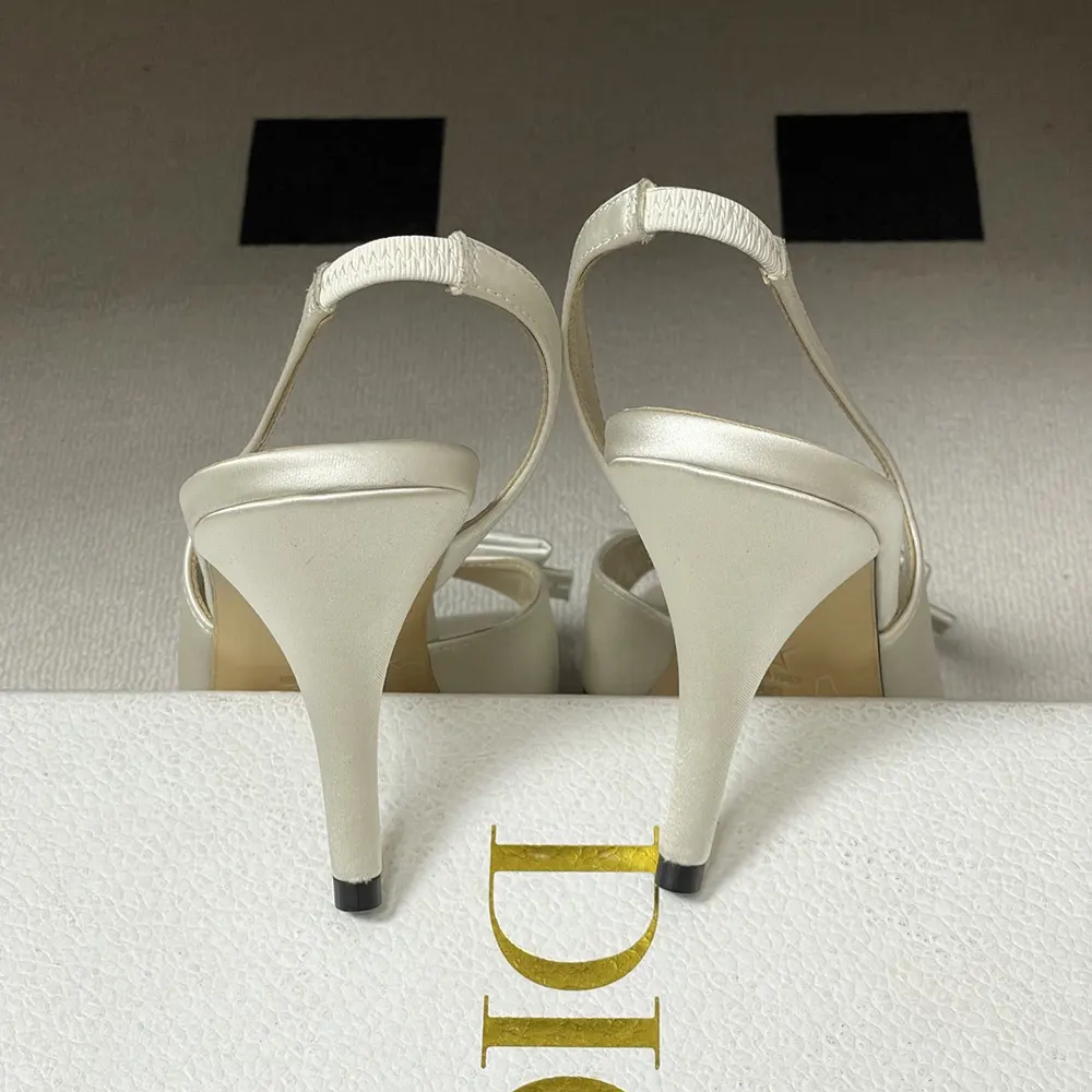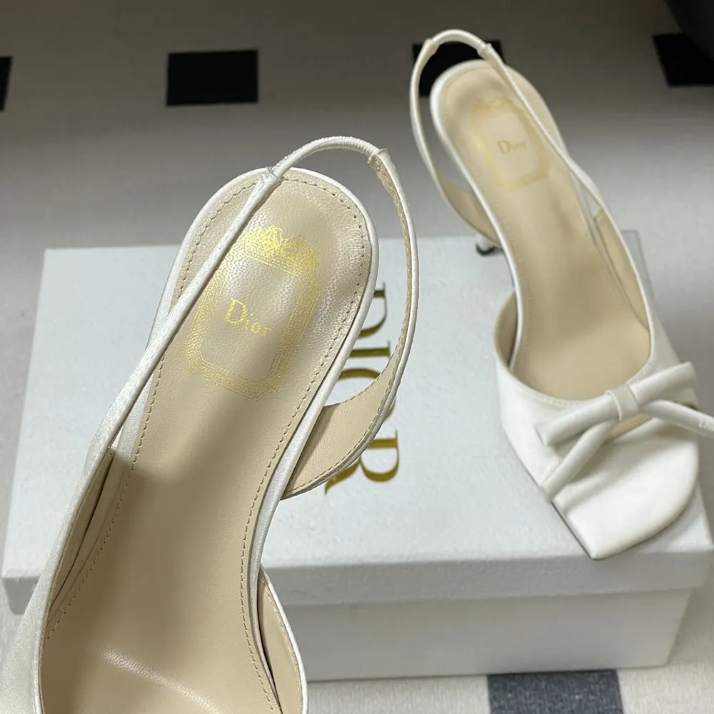 - Unveiled as part of Jonathan Anderson’s first fashion show for the House, the Dior Bow heeled slingback sandal celebrates elegance through one of the House’s eternal symbols: the bow. Elevated by a sole in the shape of a D for Dior, the satin shoe, defined by its streamlined silhouette, embodies a sublime expression of refinement.