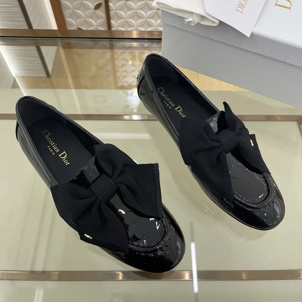 Dior Women Diorissimo Loafer Black Patent Calfskin and Grosgrain