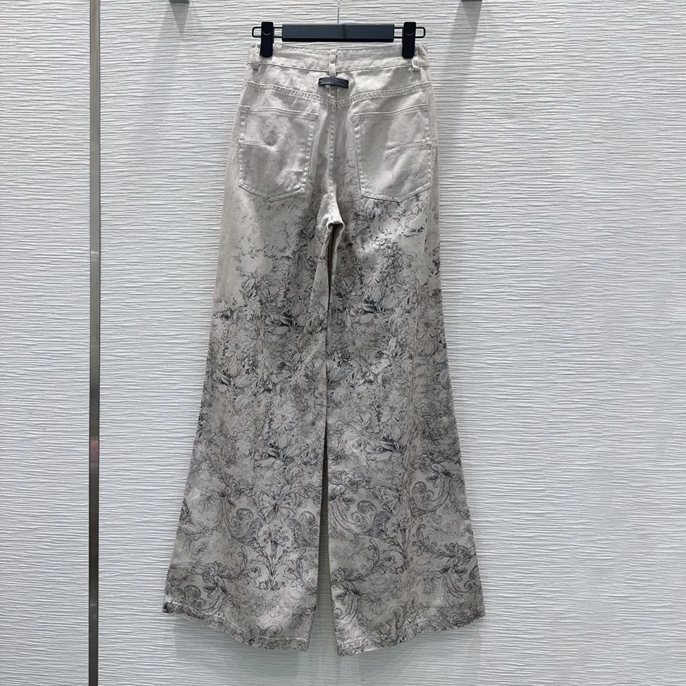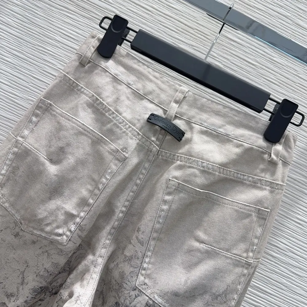 Dior Women Flared Jeans Beige Dior Barocco Cotton-Linen Denim 612P24A3191