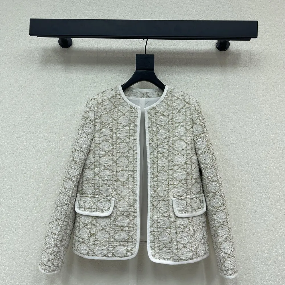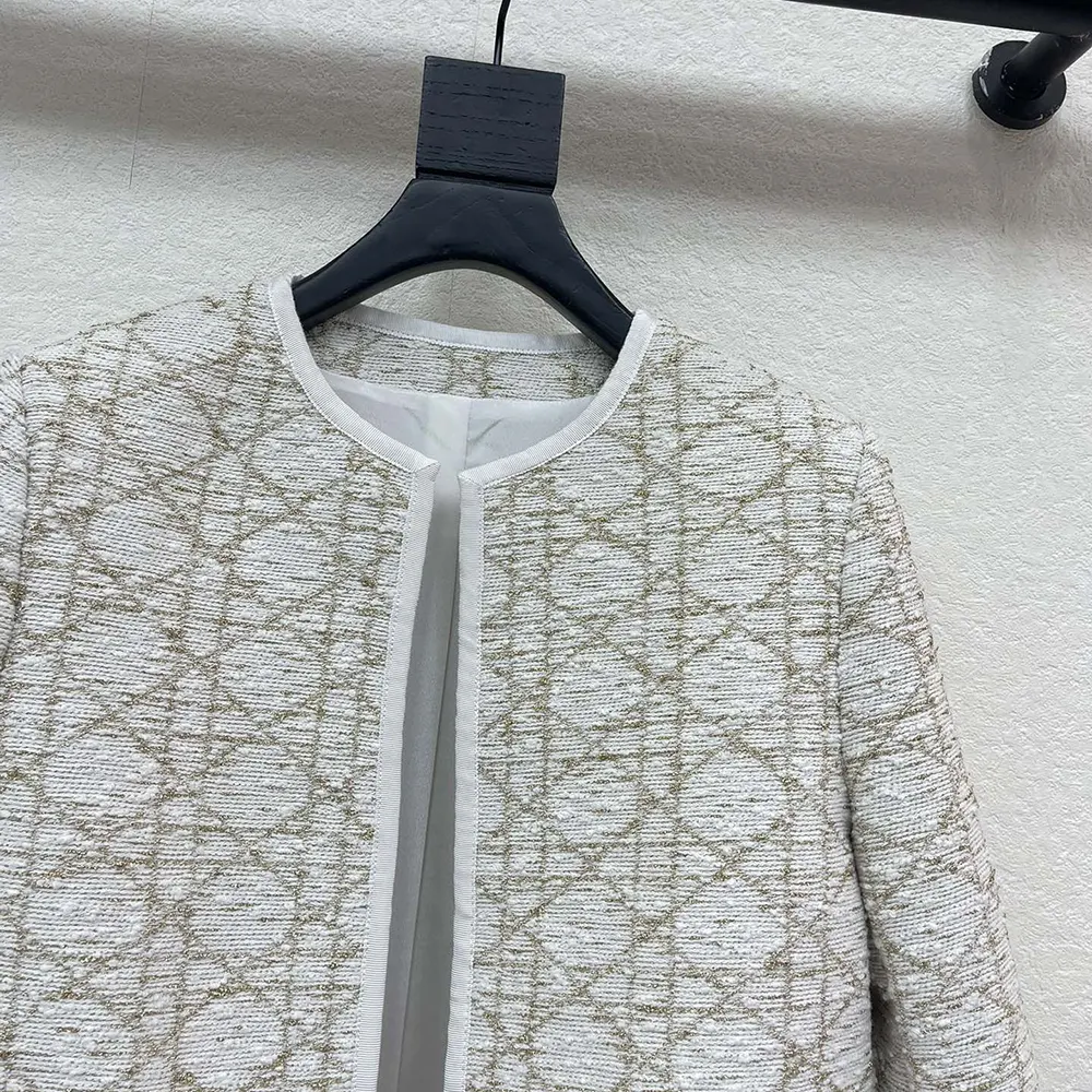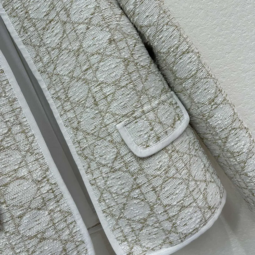 Dior Women Macrocannage Regular-Fit Jacket White and Gold-Tone Wool-Blend Tweed