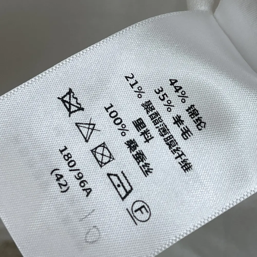 - 44% polyamide, 35% wool, 21% metallic polyester and lining: 100% silk