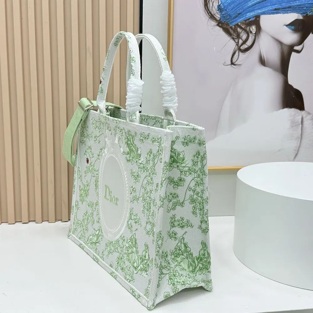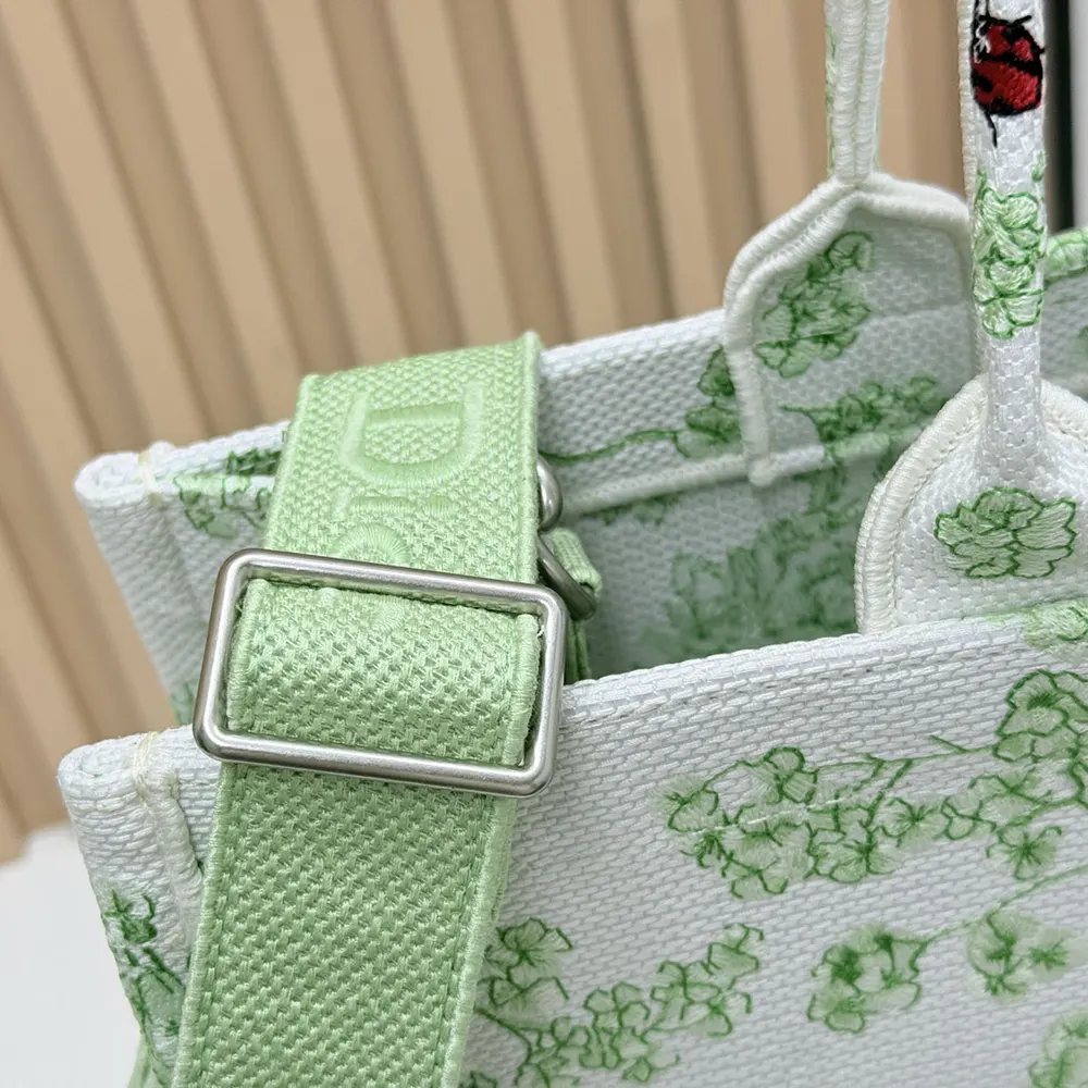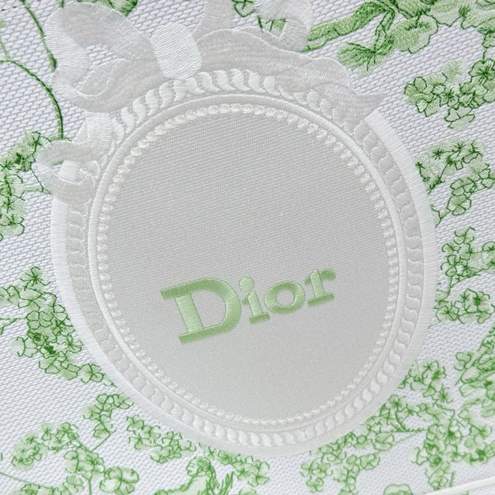 Dior Women Medium Dior Book Tote with Strap Green Multicolor Toile de Jouy Clover Embroidery
