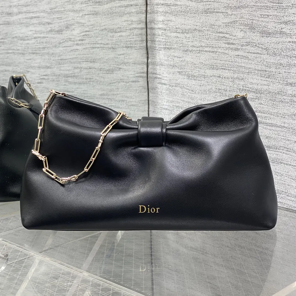 - The supple construction in luxurious natural grain lambskin with a semi-gloss finish honors the bow, a cherished House symbol.