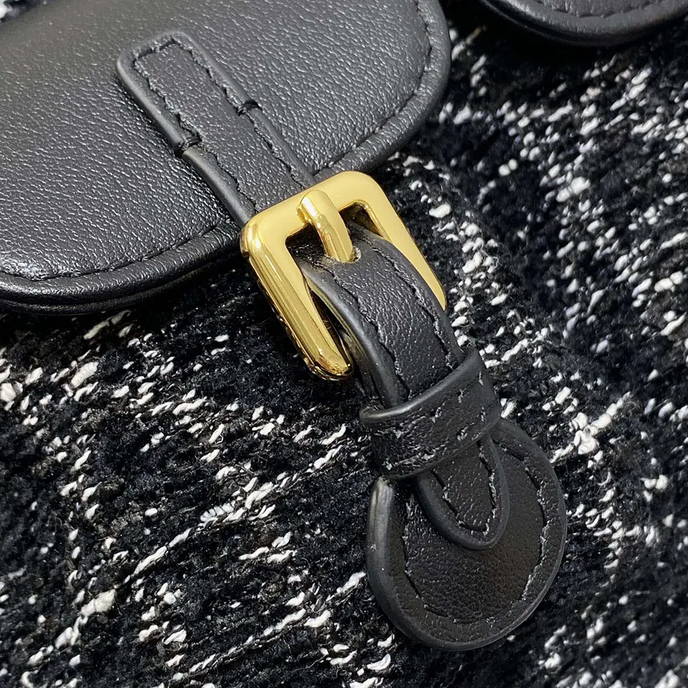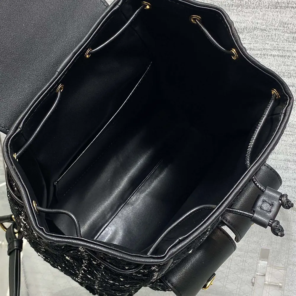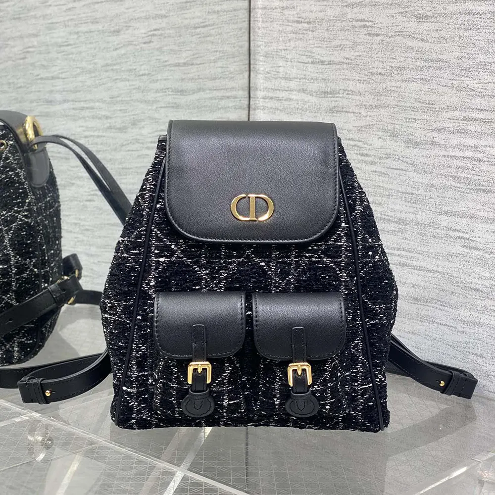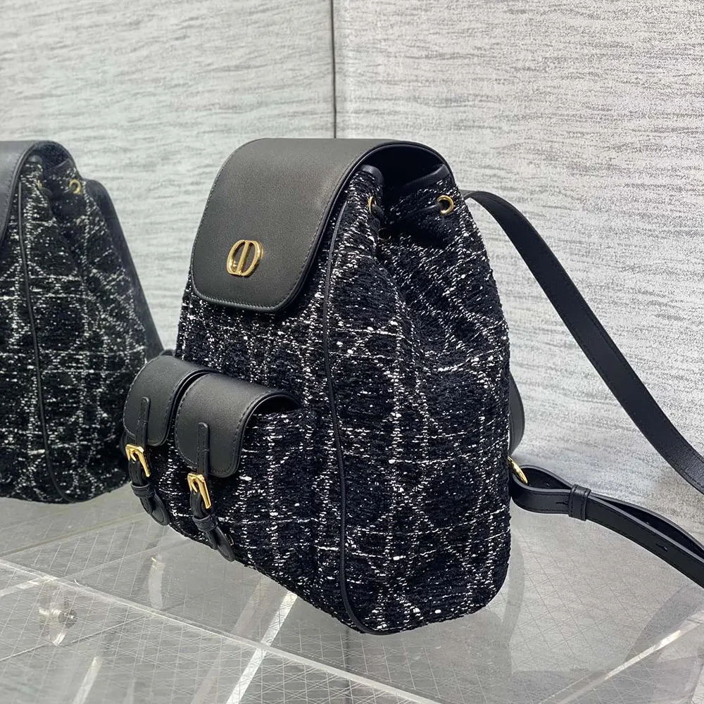 Dior Women Medium Dior Caro Backpack Black Tweed with White Cannage Motif