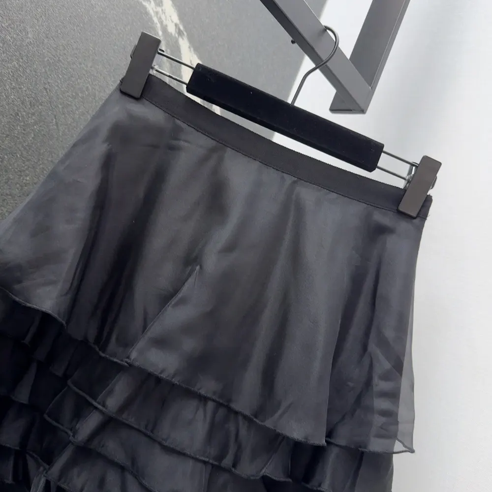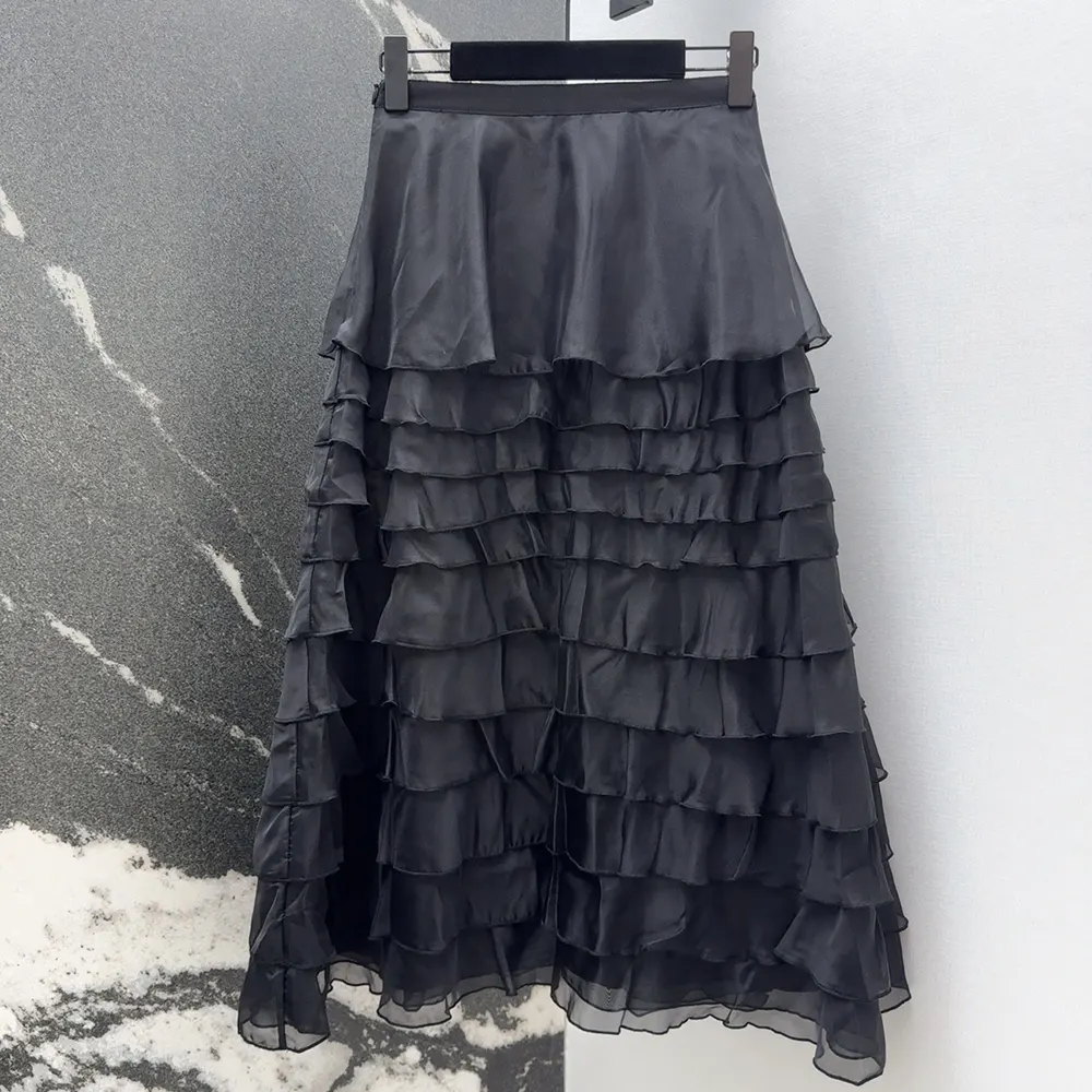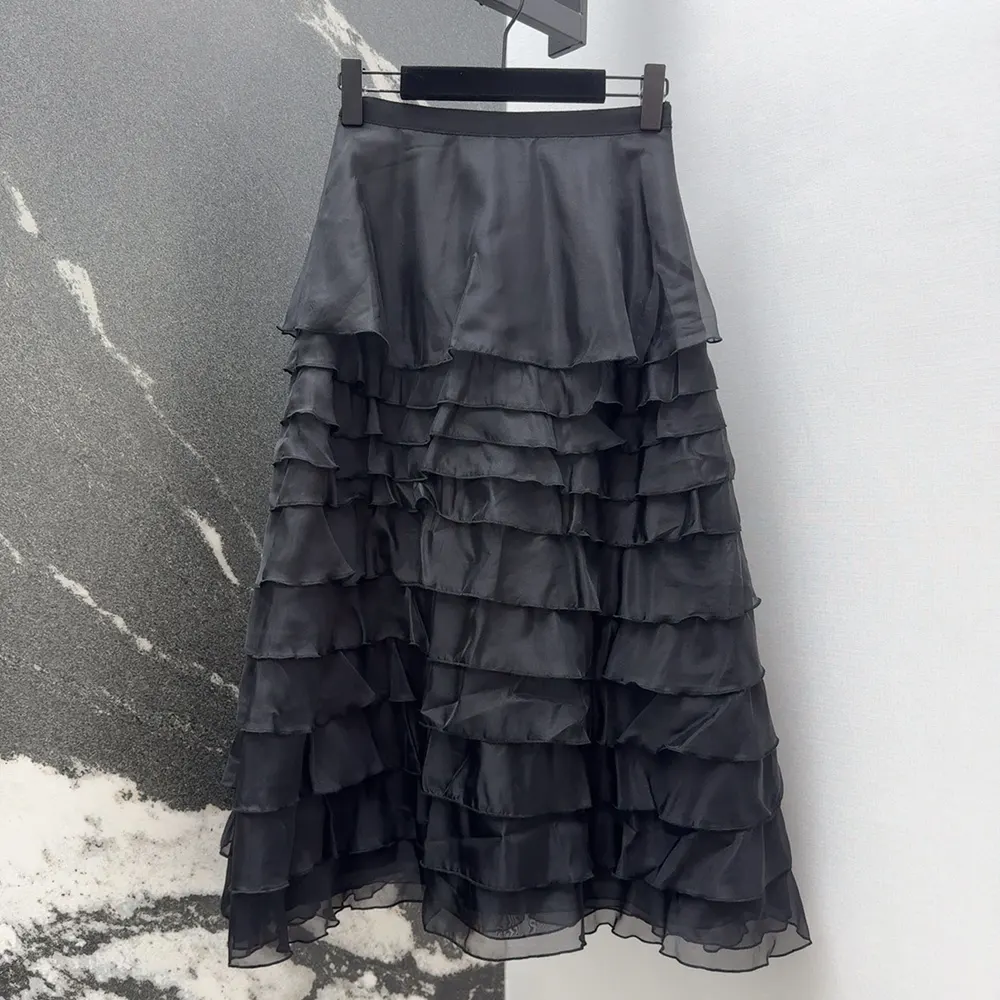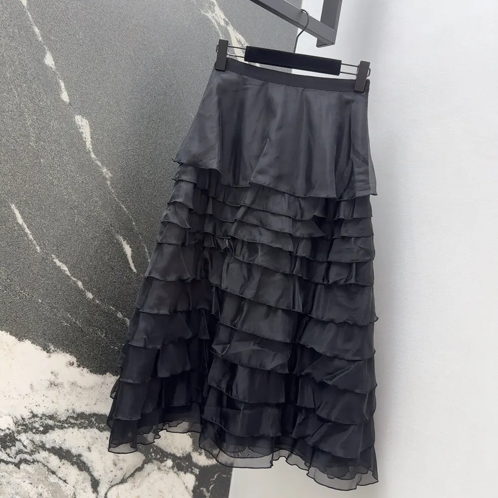 Dior Women Mid-Length Ruffled Skirt Black Silk Organza 611J16A6605