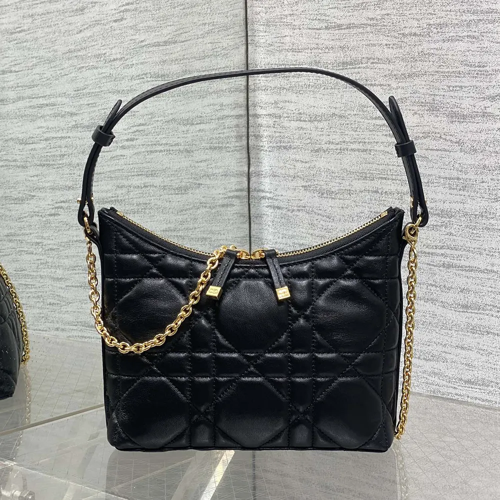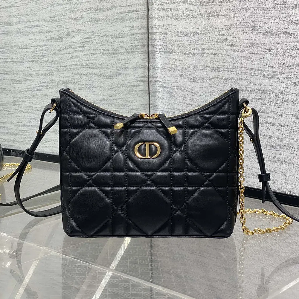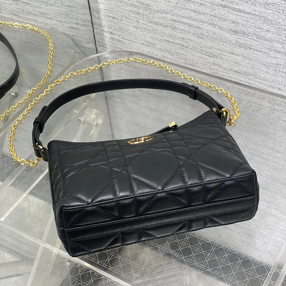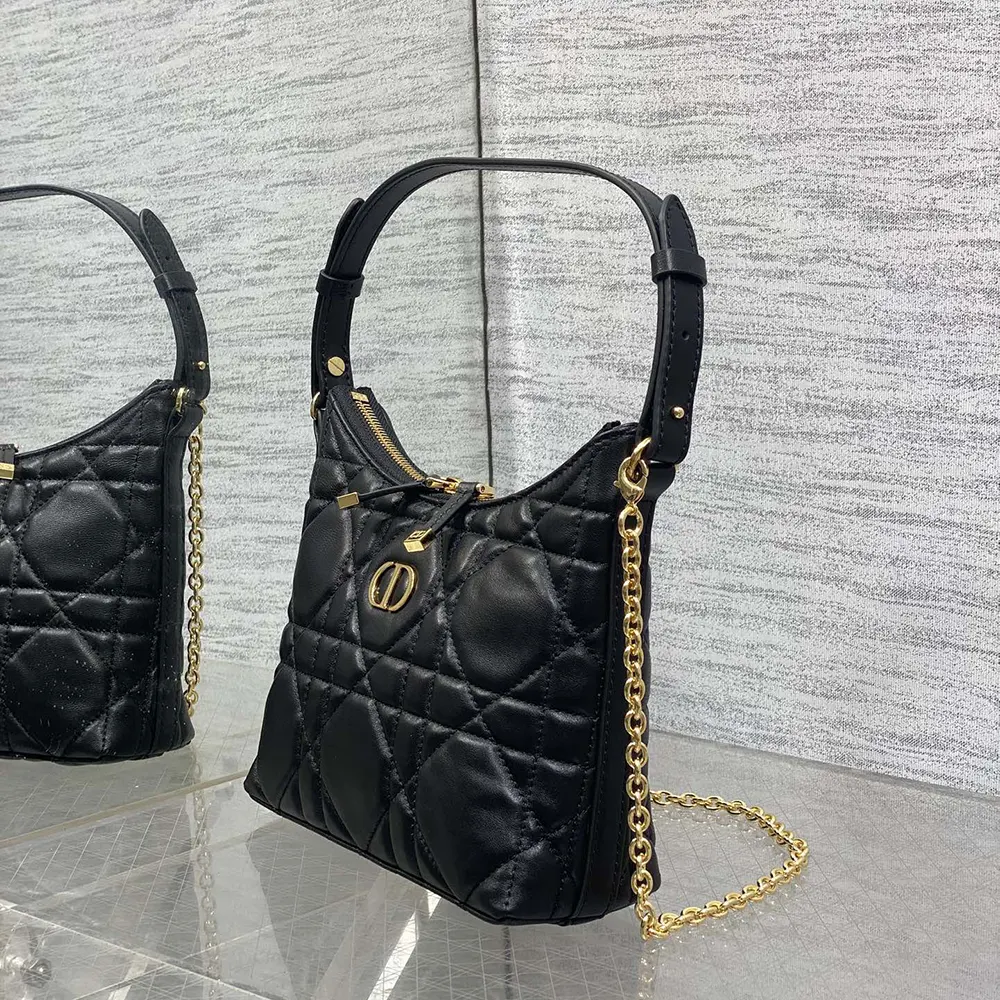 Dior Women Miss Caro Diorling Mini Bag with Chain Black Macrocannage Lambskin