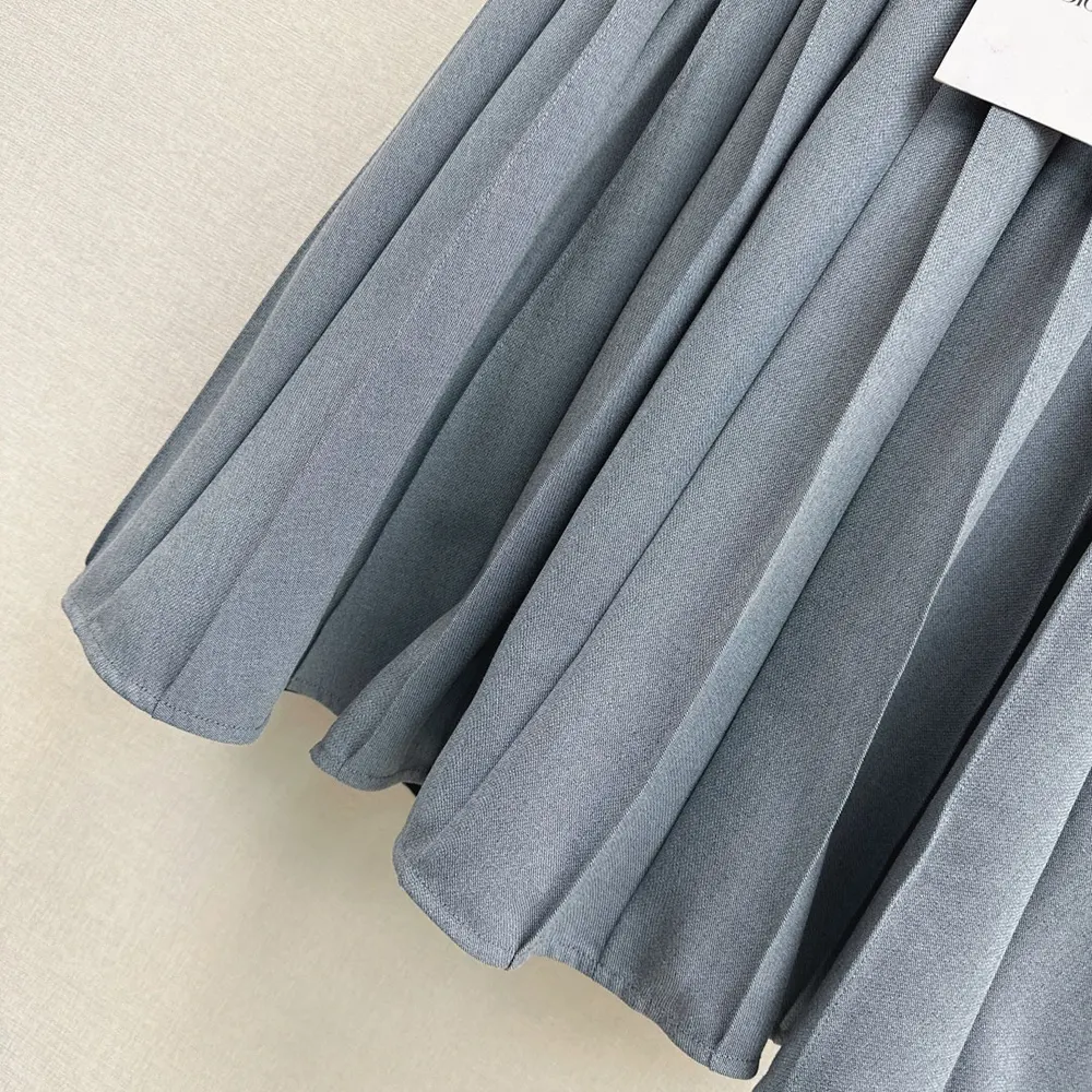 - The refined miniskirt embodies modern House codes. Crafted in blue virgin wool tweed, it features a flared silhouette with elegant pleats.